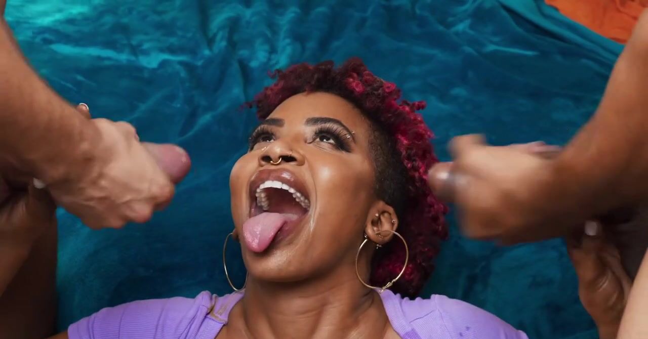 «Ненасытная негритянка с шикарным телом переживала, что одного члена ей может не хватить, поэтому она и пригласила к себе сразу двух мужчин, желая заняться с ними групповым сексом. Страстная милфа с силиконовыми сиськами моментально возбудила ребят и принялась жарко отсасывать их большие члены. Особенно сильно ей нравится сосать хер и попутно наслаждаться вагинальным проникновением. В момент оргазма она может даже заглотить хер полностью.»