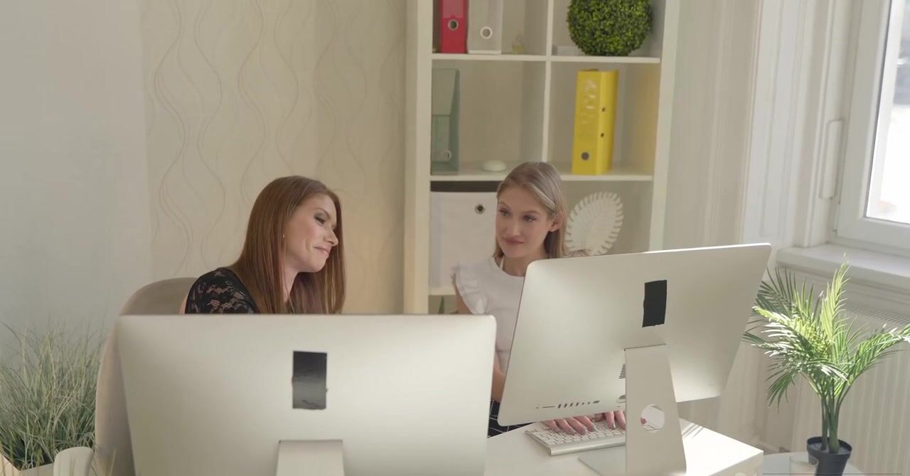 «Эти две красотки не будут жаловаться на начальника, который к ним пристает и предлагает заняться групповым сексом в рабочее время. Блондинки с удовольствием соглашаются и даже удивляют босса, ведь им явно мало вагинального проникновения, для полного кайфа худышкам хочется в попки. Эти стройные проказницы с наслаждением отдаются в упругие дырочки на столе, а так же смачно отсасывают хер после узеньких задниц.»