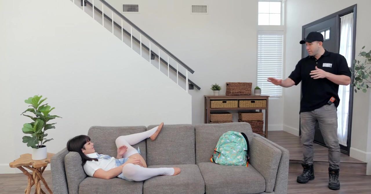 «Милая студентка не ожидала, что кто-то сегодня придет к ним в гости. Поэтому не стала запирать дверь, принимаясь мастурбировать на диване в гостиной. Миниатюрная студентка в белых чулках принялась не просто дрочить, она засунула себе в упругую попку анальную пробку и получила нереальное удовольствие. Но тут пришел друг отца, который подарил проказнице ещё больший кайф, поимев её своим толстым членом.»