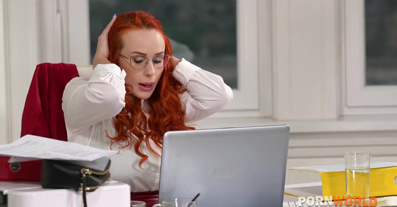 Рыжей начальнице мало мастурбации, ей нужен анальный секс