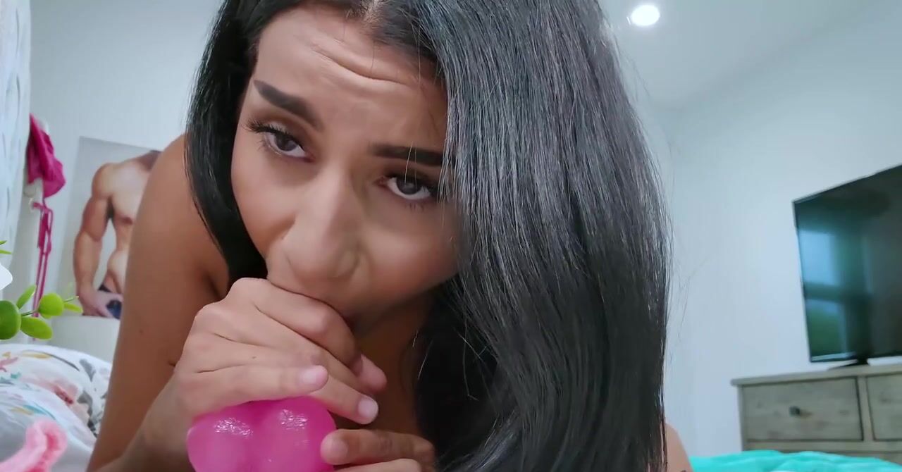 Черный сводный брат помогает сестре научиться делать глубокий минет
