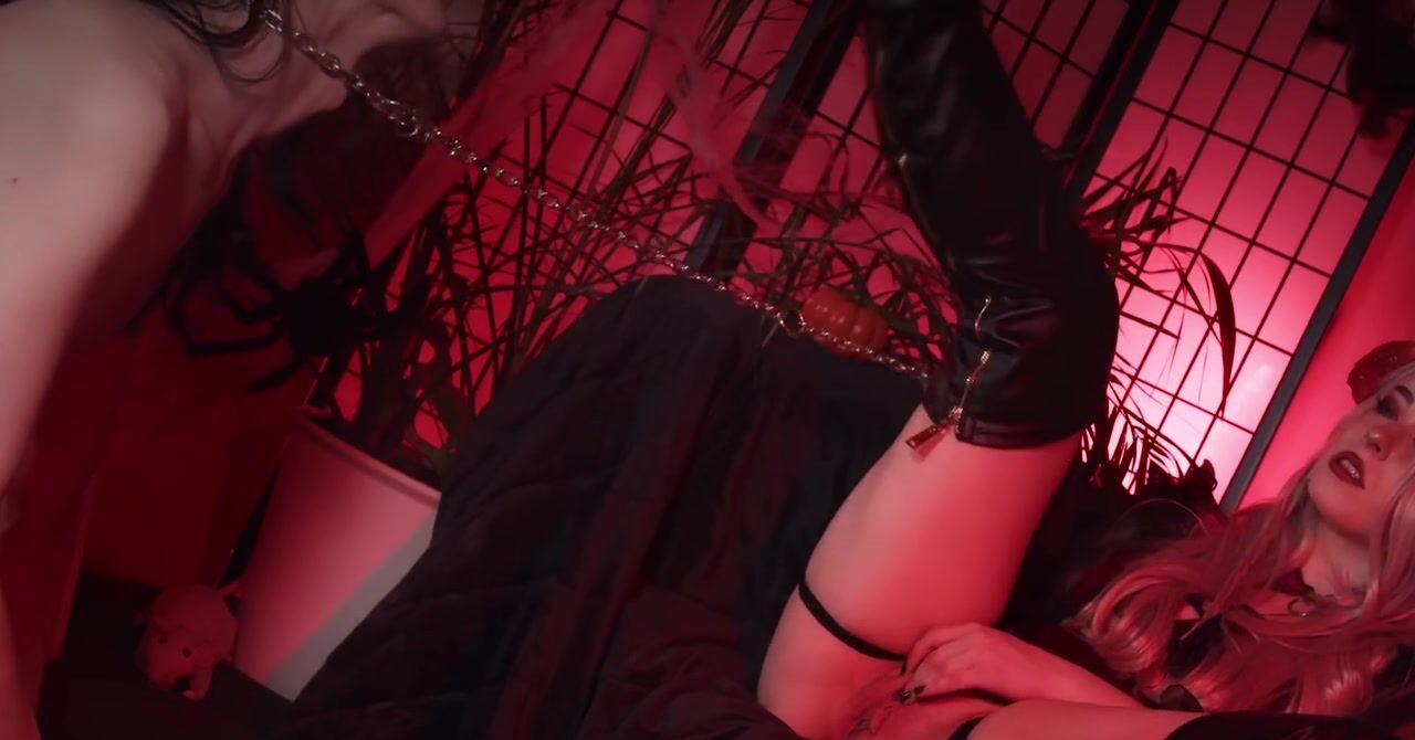 «Парень с удовольствием становится сексуальным рабом этой красотки. Властная цыпочка в сапогах расставляет перед ним ноги и приказывает первым делом вылизывать её киску, что чувак делает с удовольствием. А потом раба можно и отшлепать. Цыпочка может даже с его задницей поиграться. Она засовывает в жопу пацана анальную пробку, а так же пальцы. Парень не сопротивляется и не отказывается, ему самому по кайфу такой анал.»