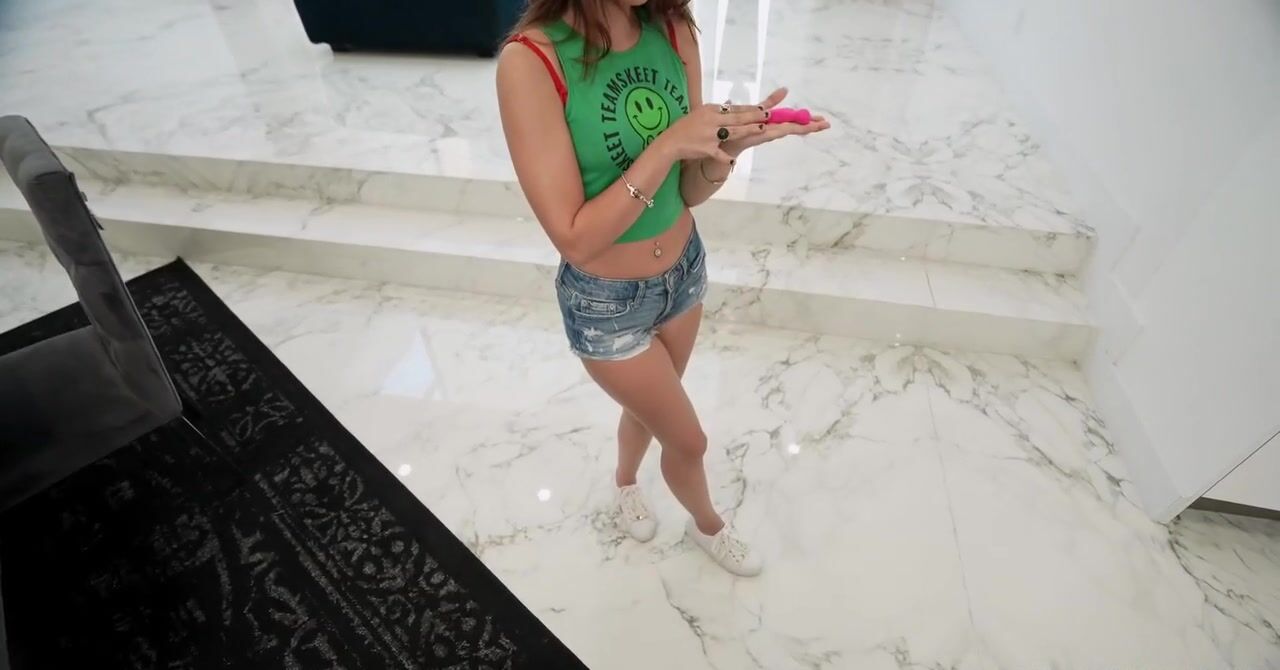 Миниатюрная рыжуля в коротких шортах напросилась на секс