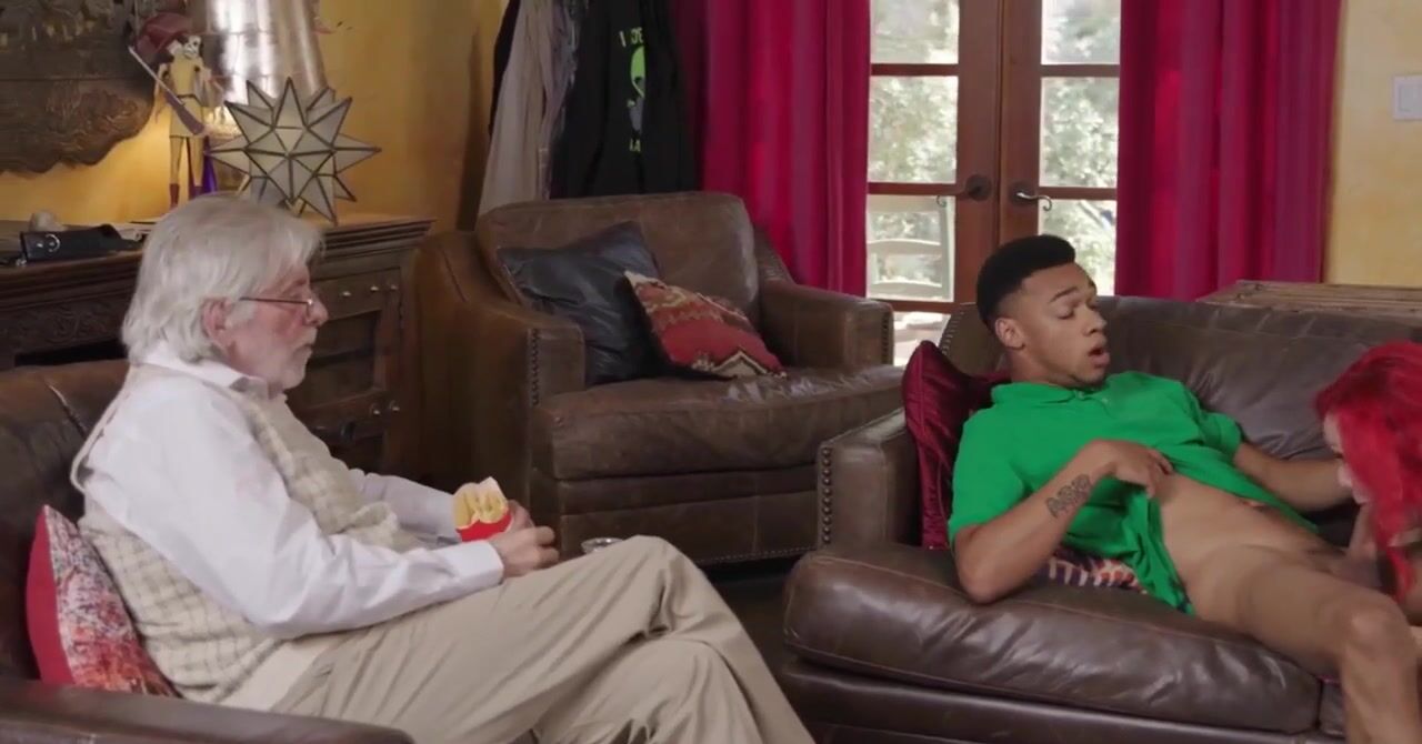 «Седой старик уже не в состоянии трахать свою жену, а ведь она хочет жестко ебаться. Самое время стать куколдном, что старый муж и делает, приглашая в гости молодого негра, который должен удовлетворить желания супруги. Сам дед устраивается поудобнее в кресле и наблюдает за жаркой еблей со стороны, рыжая толстышка наслаждается половым актом по полной. Чернокожий парень даже надевает ей на шею ошейник и садит её на цепь.»