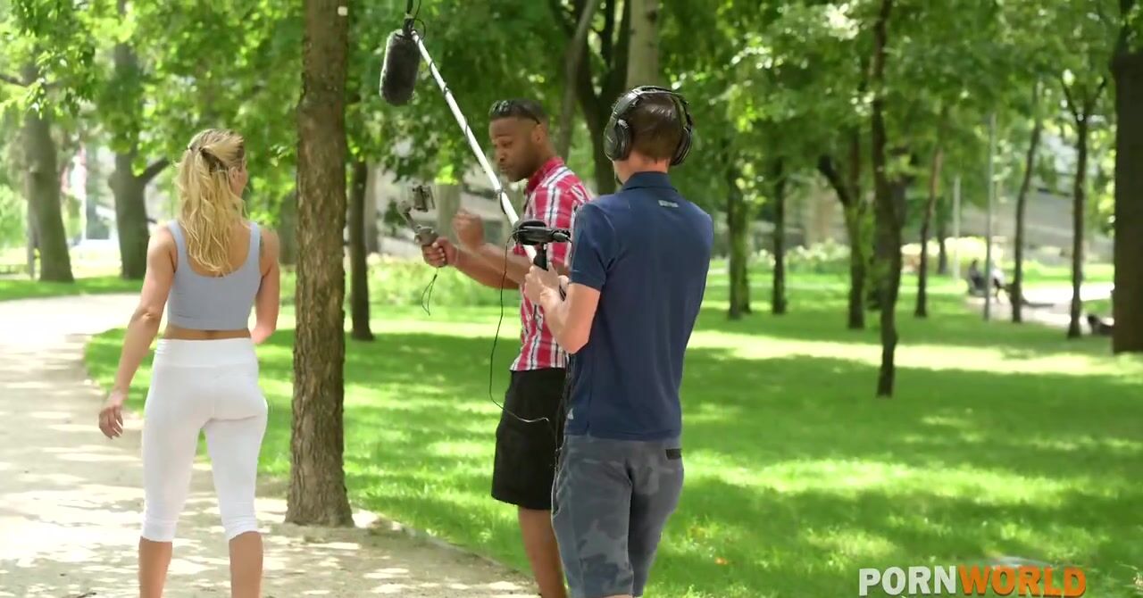 «Спортивная блондинка после пробежки занялась спортом в парке, а потом поспешила к двум парням, желая соблазнить их на групповой секс. Белокурая худышка с упругим телом разделась и показала себя во всей красе. Белого парня и негра она предупредила, что сегодня ей хочется чего-то жесткого, например, двойного проникновения. Сперва попку пришлось хорошо разработать, чтобы девчонке было не больно от больших членов.»