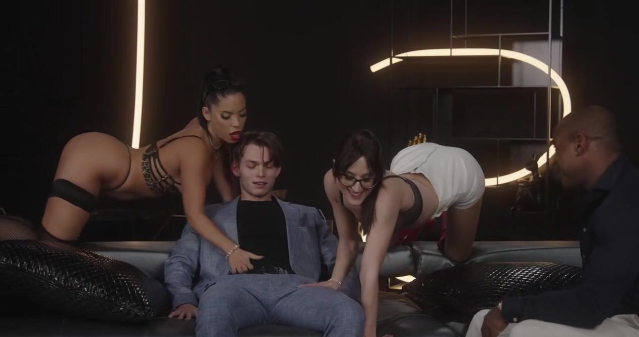 «Три развратные красотки соглашаются заняться групповым сексом с двуми парнями и по очереди наслаждаются двойным проникновением. Белый чувак и негр с большим членом отжарили развратниц по полной программе и доставили им нереальное удовольствие. Смазливые брюнетки обожают жестко ебаться во все отверстия, им такое безумно нравится. А после обеих дырочек члены можно и отсосать как следует. Сперму сучки принимают на лица.»