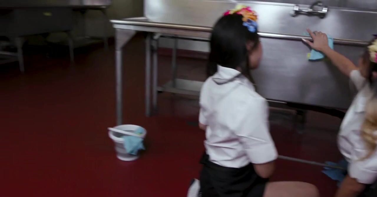 «Две сестры азиатки устроились работать в ресторан и делают там всякую работу. Директору безумно нравятся эти стройные красотки, поэтому он пытается развести их на групповой секс, обещая повышение. Смазливая блондинка и брюнетка не могут отказать начальнику, они вместе отсасывают его крепкий член, а потом отдаются в узенькие киски. Во время ЖМЖ смазливые проказницы даже вылизывают щелки друг дружки.»