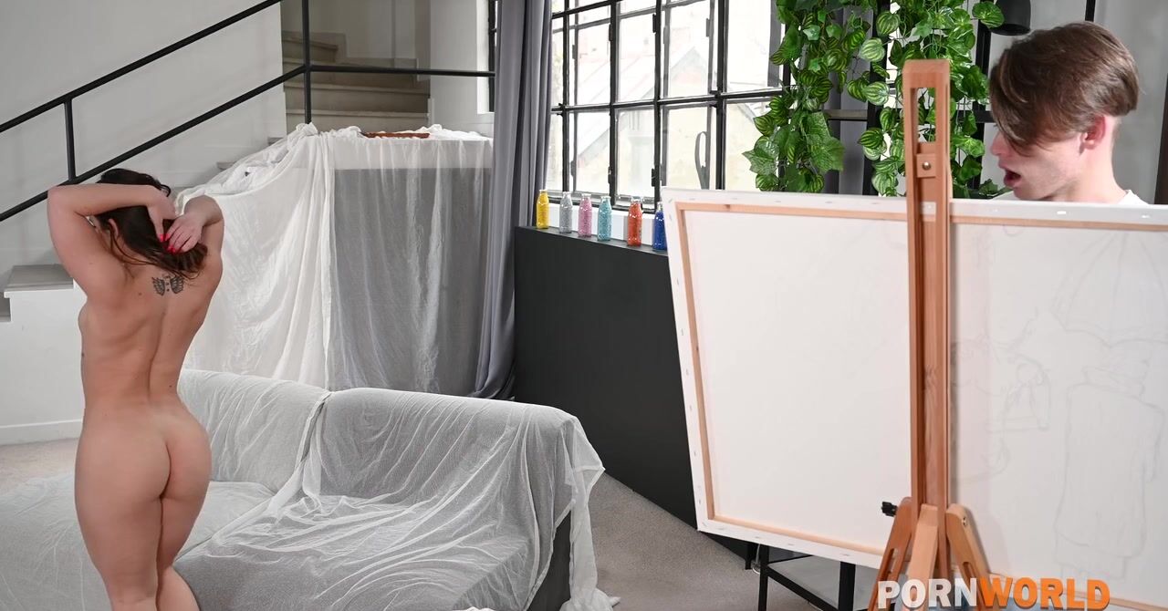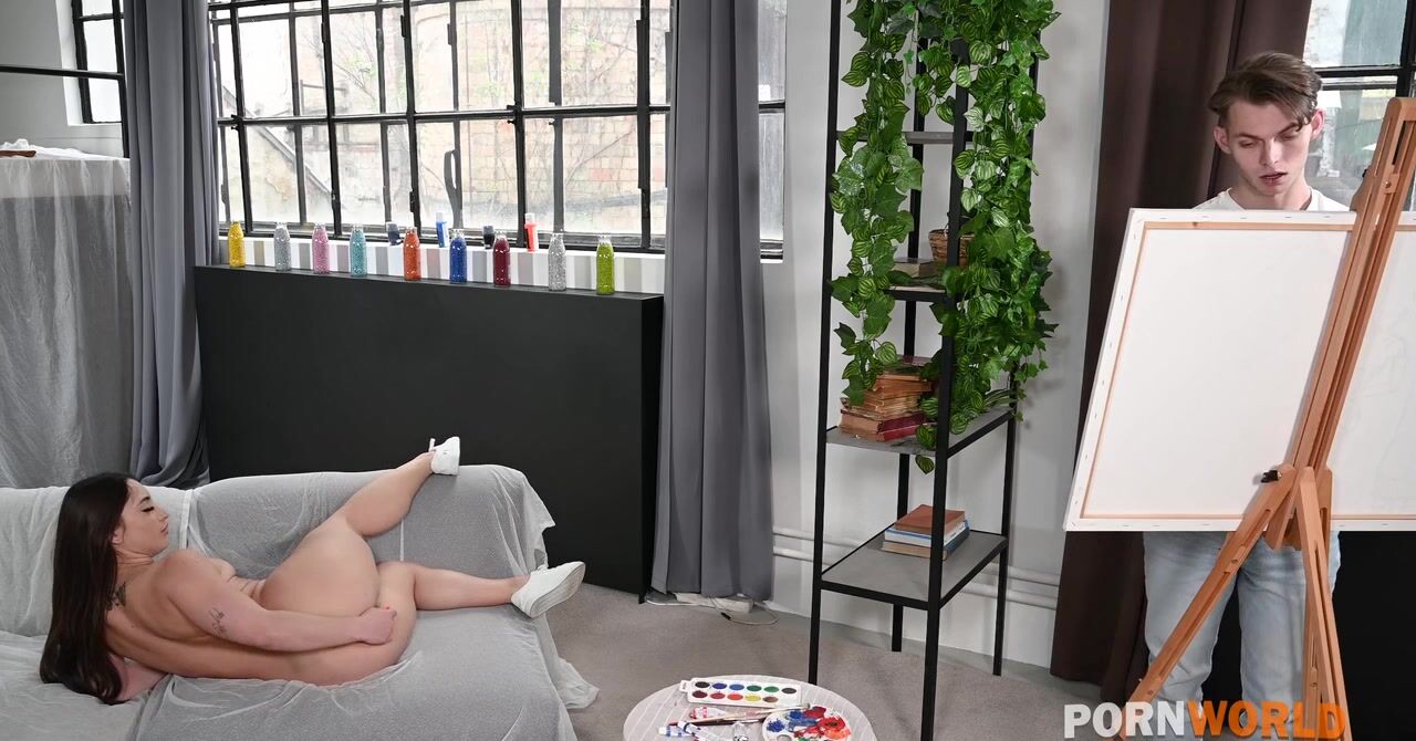 «Милая брюнетка с маленькими сиськами раздевается перед художником пока тот рисует её портрет. Привлекательная натурщица с длинными ресницами не только хочет показать своё соблазнительное тело, она ещё и бритую киску пальцами ласкает, явно желая заняться сексом с творческим парнем. Уже вскоре цыпочка получает желаемое и принимается делать смачный минет, доставляя парню нереальное удовольствие своим ротиком, а потом и киской.»