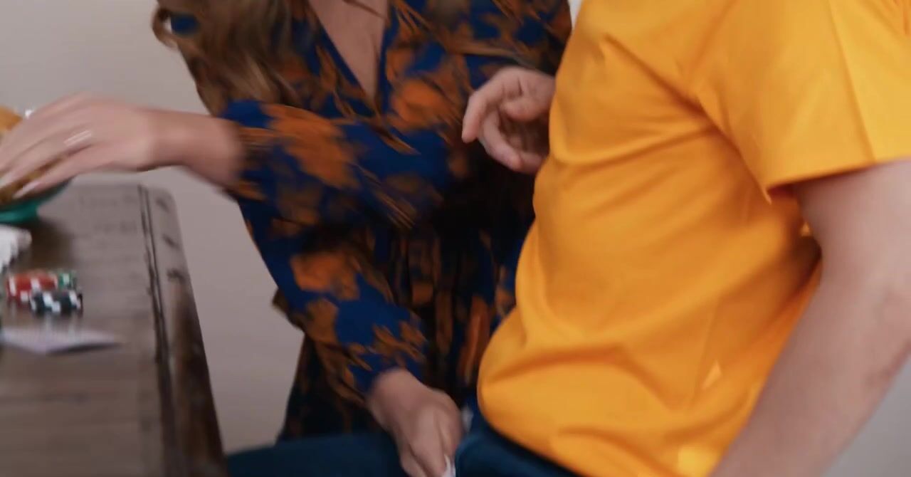 «Муж, вместо того чтобы трахать неудовлетворенную жену проводит время с друзьями и играет с ними в покер. Сперва супруга пыталась сама себя удовлетворить с помощью искусственных членов, но у неё ничего не получилось, она всё равно хотела трахаться. Поэтому милфа с силиконовыми сиськами залезает под стол и принимается там сосать члены двух гостей. Уже вскоре она ещё и наслаждается групповым сексом с белым и черным.»