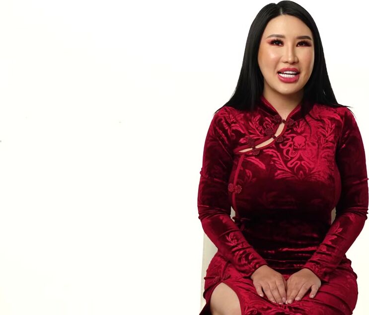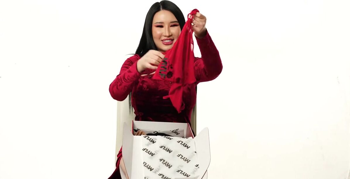«Зрелая азиатка с красивым телом ещё и сексуальном белье красного цвета надевает, становясь ещё более соблазнительной. Теперь опытная развратница с большими сиськами принимается удовлетворять свои желания, а заодно и радует парня ротиком и бритой киской. Эта горячая бестия делает прекрасный минет и потом отдается в щелку на кровати. А ещё во время полового акта она ласкает его фаллос своими сиськами.»
