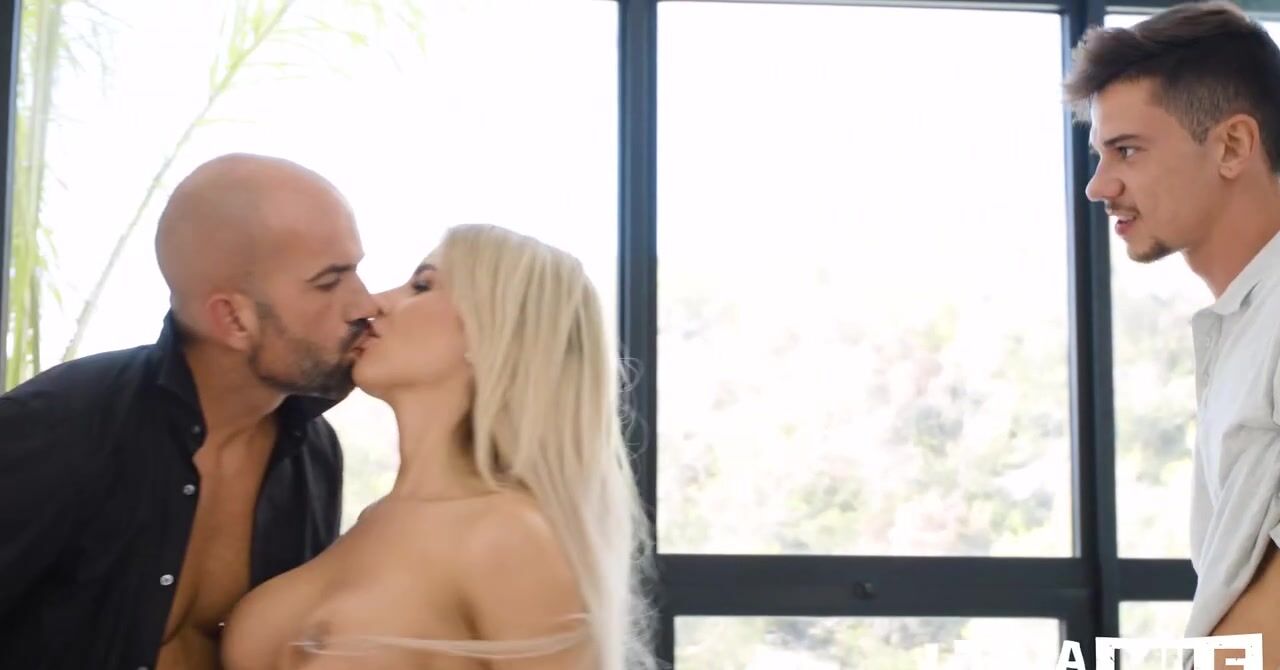 «Сперва белокурую домработницу латинку поимел сын хозяина, который подстроился к зрелой красотке сзади и поставил её раком. А потом это же самое сделал уже и хозяин. В конечном итоге белокурая развратница с силиконовыми сиськами насладилась страстной еблей втроем. Она отсасывала члены по очереди и наслаждалась вагинальной долбежкой. А когда мужчины кончили на стеклянный стол, то сперму пришлось слизать.»