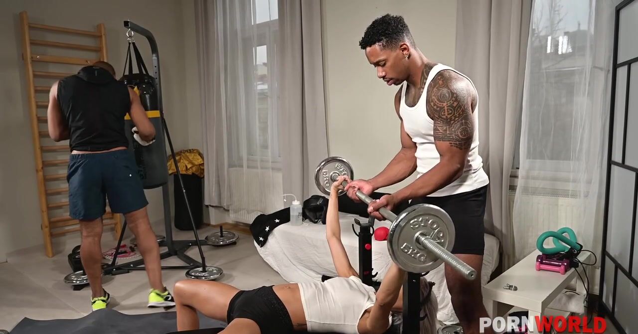«Загорелая латинка перед тренировкой в раздевалке спортзала приласкала свою упругую попку стеклянным членом и даже испытала анальный оргазм. Уберегло ли её это от сексуального возбуждения во время тренировки? Нет, уже вскоре смуглая худышка соблазнила черного тренера и его приятеля. Теперь жаркая развратница может удовлетворить себя по полной. Она наслаждается двойным проникновением и бурно кончает.»