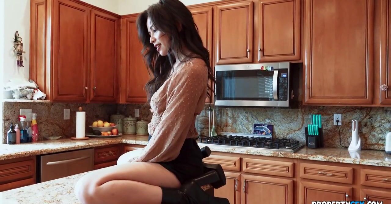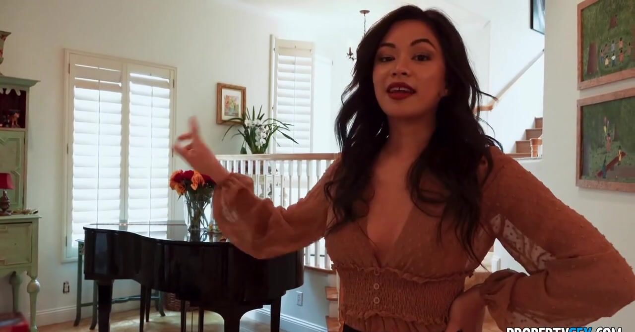 «Милая девушка риелтор показывает не только дом, но и себя. Эта жаркая красотка заигрывает с парнем, а так же встает раком при любом удобном случае. Черноволосая крошка не скрывает, что ей очень хочется секса, уже вскоре она прямо об этом говорит и наслаждается крепким членом потенциального покупателя. Жаркая крошка с большими натуральными сиськами прекрасно делает жаркий минет и потом отдается в мокрую киску.»