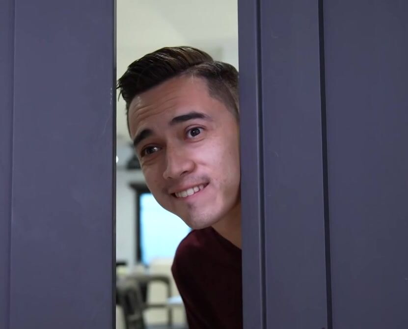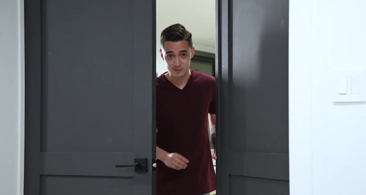 Мачеха видит, что пасынок подсматривает за ней пока она переодевается
