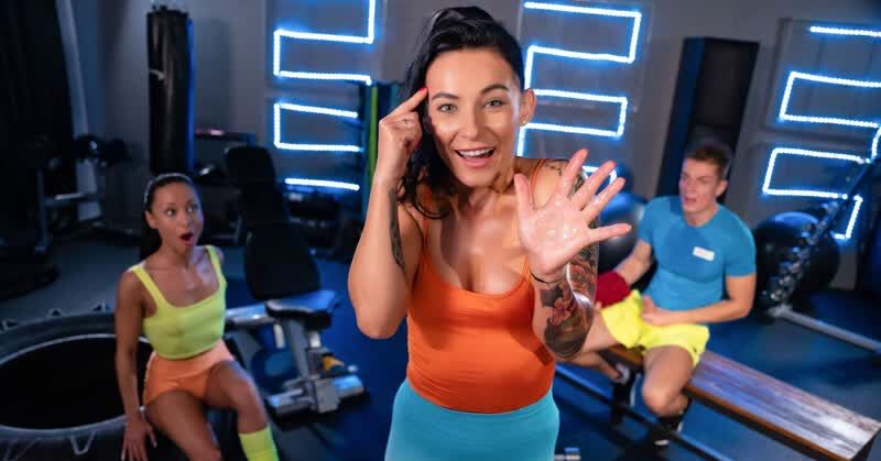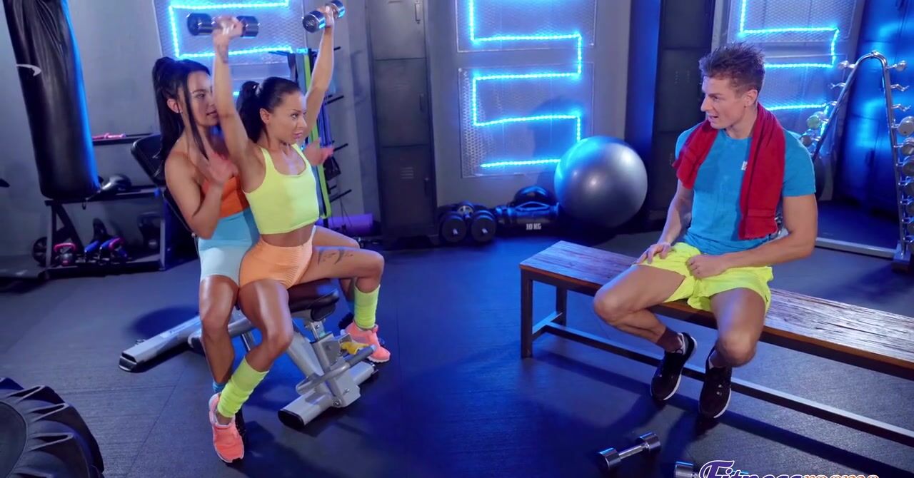 «Две спортивные телки очень сексуально выглядят. Особенно когда встают раком или когда приседают. Пацан так возбуждается от такого вида, что принимается мастурбировать, он делает это прямо в спортзале. Уже вскоре его за этим делом застают обе эти красотки. Им приятно такое внимание и они готовы порадовать возбужденного паренька ещё и групповым сексом. Худенькие брюнетки принимаются сосать его болт и отдаются в киски.»