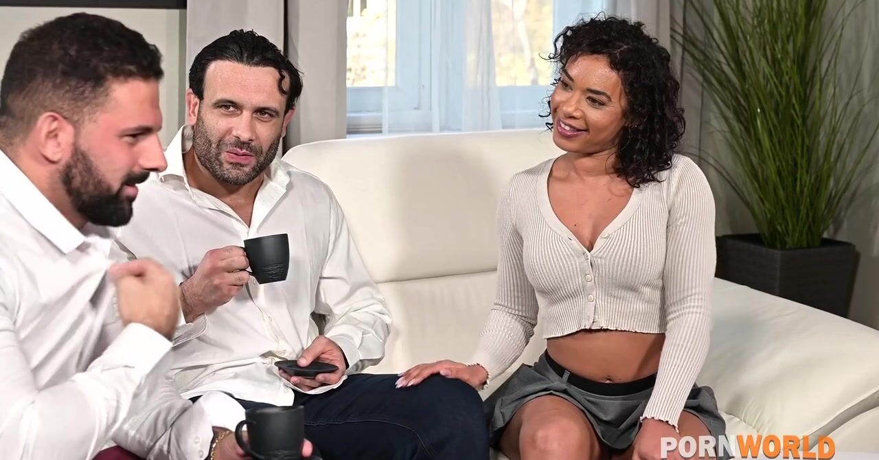«Хорошо, что у девушки такие любезные соседи. Эти два мужика приглашают привлекательную телку к себе, когда у неё ломается замок. Девушка может подождать слесаря у них в гостях, а чтобы ждать было не скучно, мужики предлагают красотке заняться групповым сексом. Отличная идея, кудрявая брюнетка с удовольствием принимается сосать их крепкие члены и потом отдается во все дырочки, кончая от двойного проникновения.»