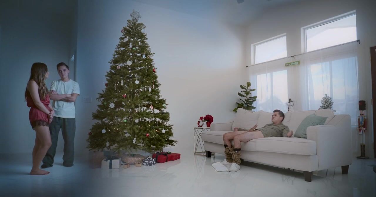 «Три смазливые кузины приезжают в гости на новый год и соблазняют молодого паренька на групповой секс. Эти худышки приходят к нему в спальню и возбуждают своими ротиками. Стройные развратницы жарко сосут член, а потом отдаются в узенькие киски. Во время группового секса девчонки целуются, ласкают тела друг дружки и даже делают куни. Такая ебля нравится не только молодчику, но и трем жарких проказницам.»