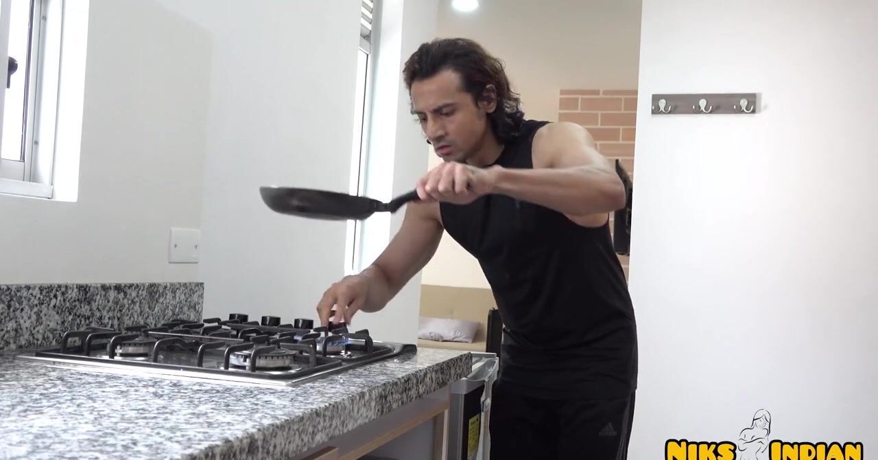 «Милая красотка в коротком платье очень плохая хозяйка и даже поджарить хлеб на сковородке у неё не получается. Телке сделала это и чуть не подождала квартиру. Ну это не страшно, зато у этой девки есть другие плюсы. Например, она шикарно трахается. Пожалуй, это даже круче, чем умение готовить. По крайней мере, индийскому парню это более важно. Доставая свой большой хуй, он может быть уверен, что телка его удовлетворит по полной.»