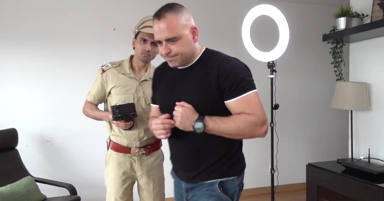 Мужик из полиции нравов трахает сочную модель в студии