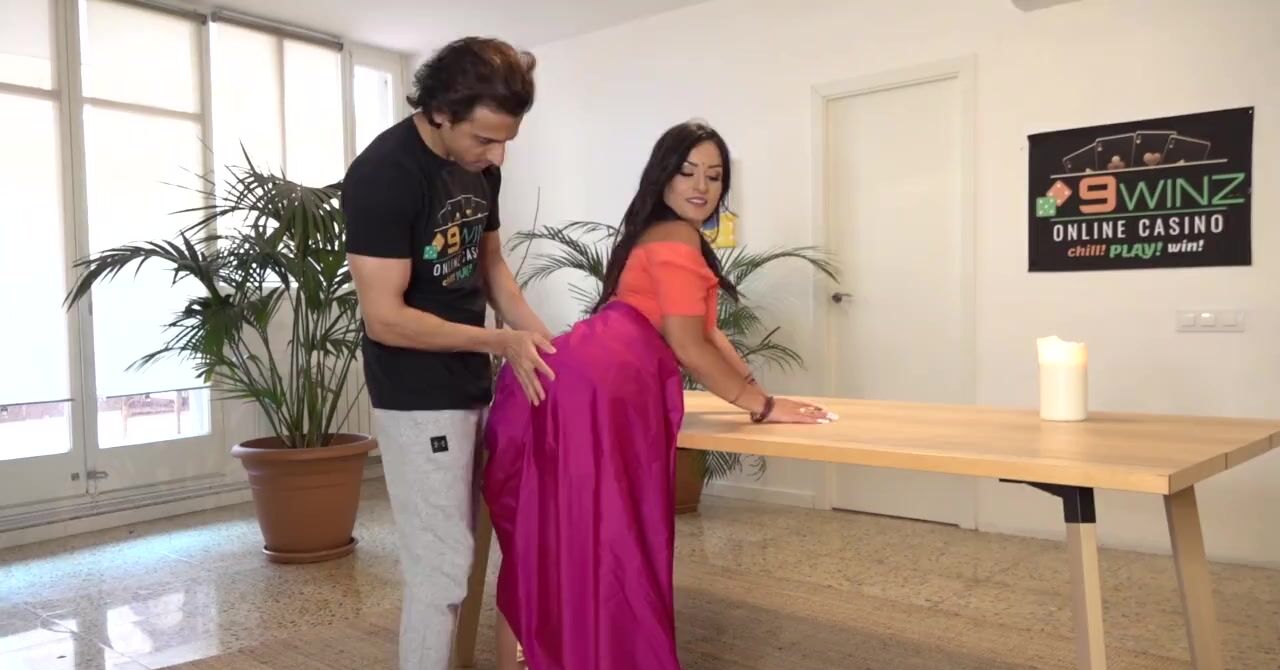 «Индийская красотка дает задрать юбку и встает раком, опираясь о стол. Привлекательной брюнетке нравится всё происходящее, она безумно возбуждается и начинает сладко постанывать от сексуального желания. Чувак оказывается умелым любовником, он хорошо знает, что на самом деле нравится его подружке. Чувак принимается делать ей кунилингус и анилингус, после чего засаживает в мокрую киску свой толстый хер по самые яйца.»