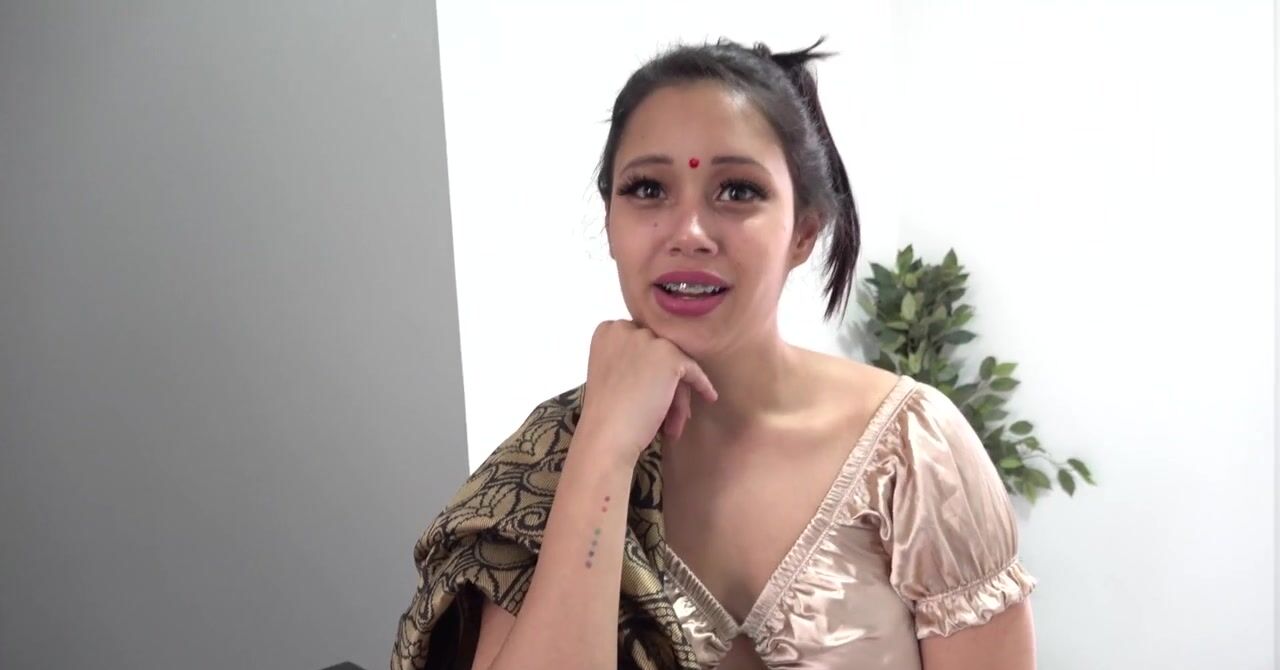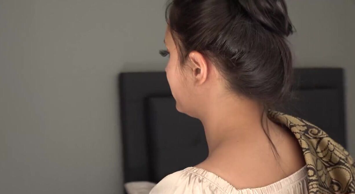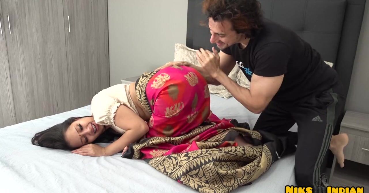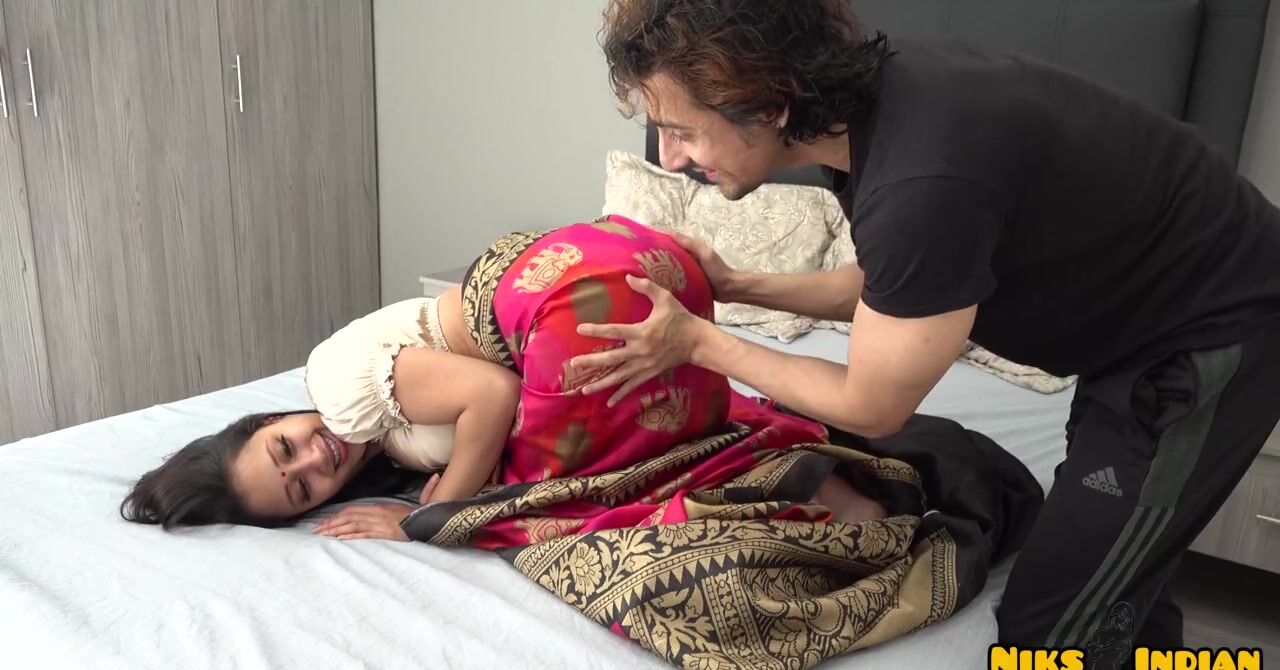 «Милая домработница увидела хозяина в душе и поняла, что хочет с ним секса, ведь у парня довольно большой член. Теперь индийская девушка пытается его соблазнить на интим. Только когда она встает раком на кровати и прогибает спину, хозяин всё понимает и засаживает в неё свой большой хер. Худышка с маленькими сиськами оказалась нереально жаркой и развратной сучкой, хотя изначально выглядела очень скромно.»