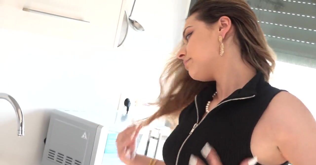 Приехал чинить раковину, но трахнул красотку раком на кухне
