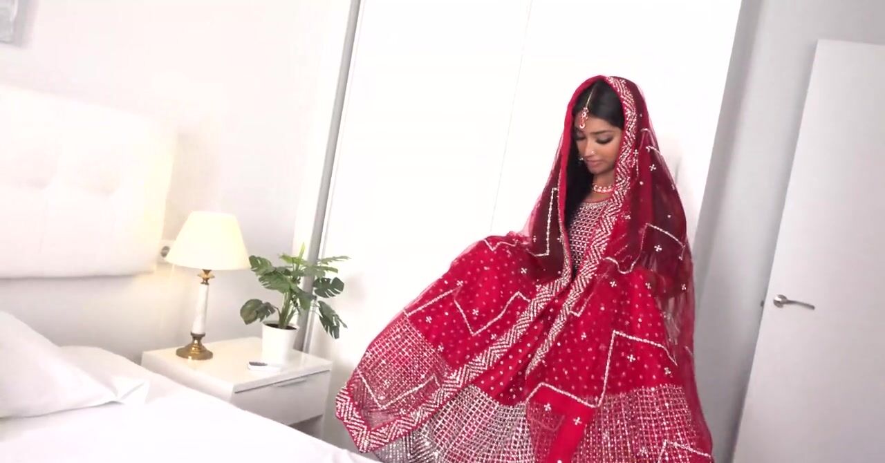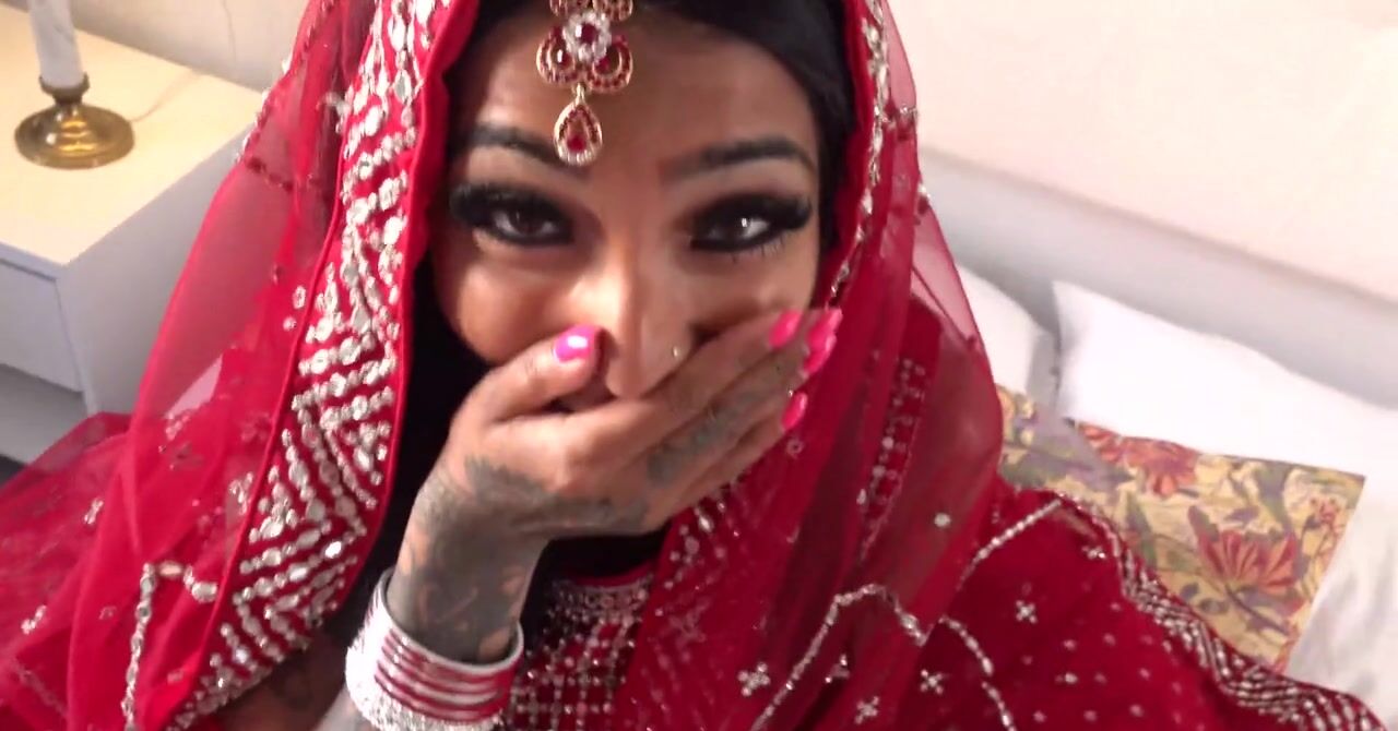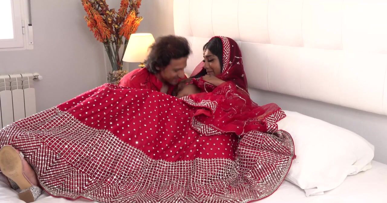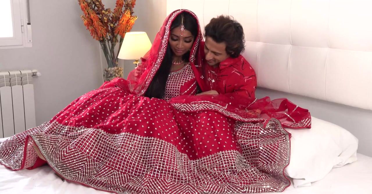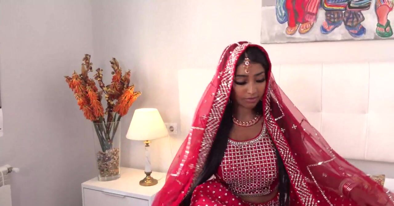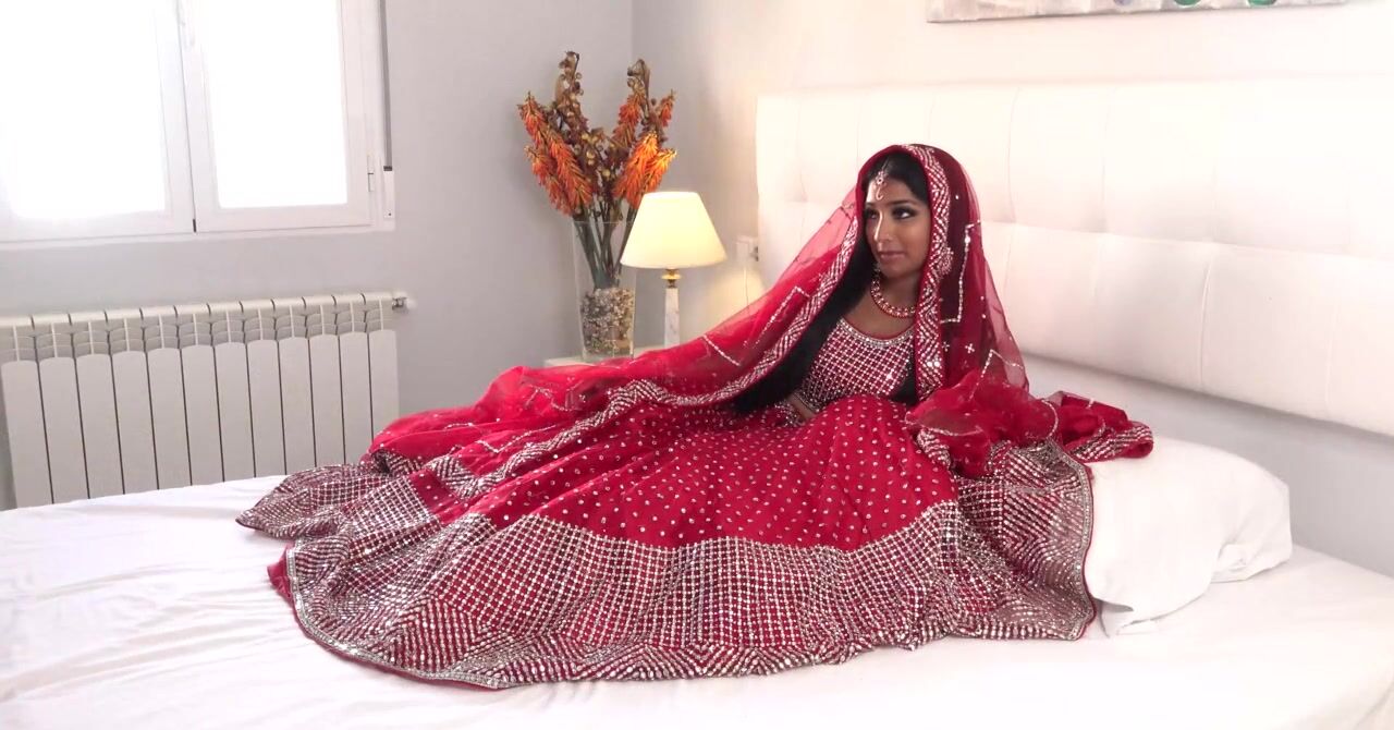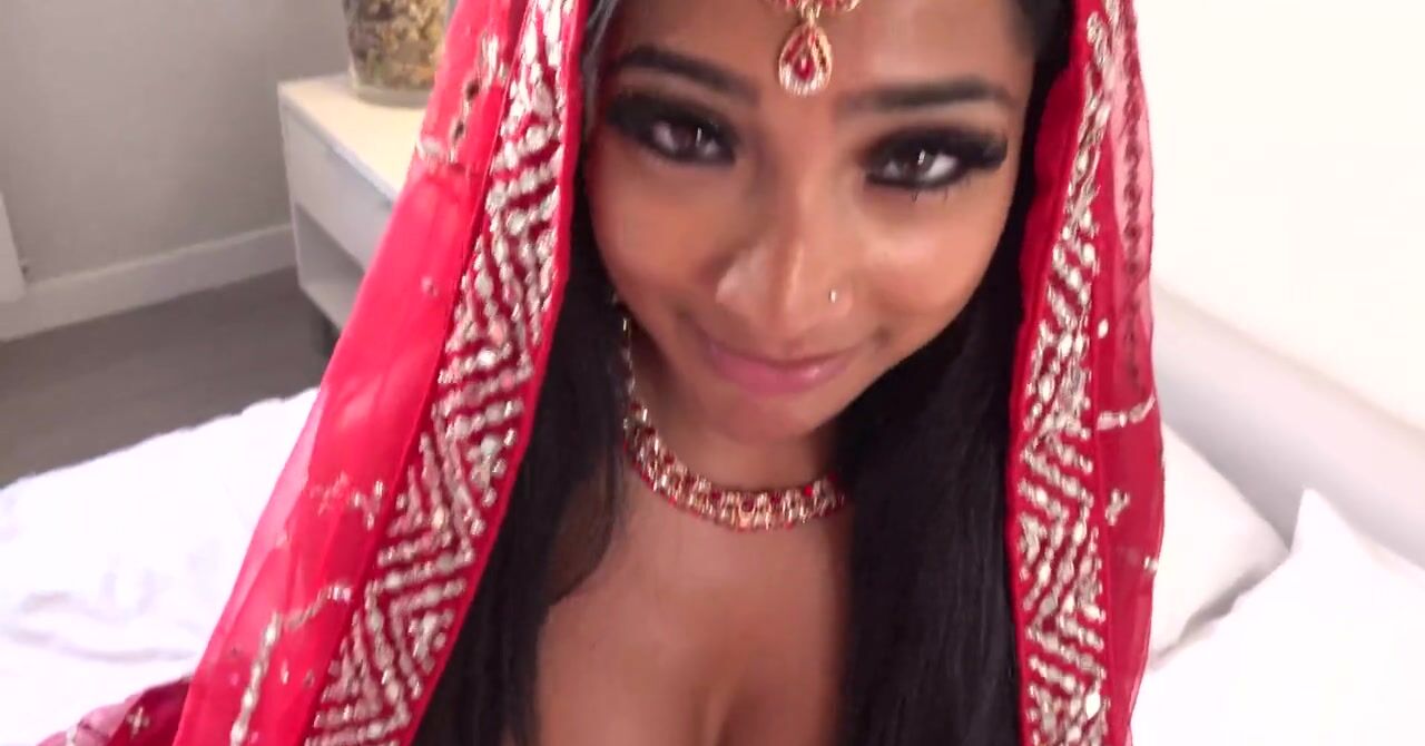 «Красивая индийская невеста вышла замуж и теперь готова наслаждаться первым брачным сексом с новоиспеченным мужем. Смуглая красотка показывает татуированное тело и дико заводится, она уже давно хотела этого. Цыпочка сперва берет в ротик толстый хер и делает жаркий минет, после чего отдается в бритую киску. Хуй у парня оказался большим, так что девка поняла, что ей безумно повезло с мужем, ведь у них ещё не было интима.»