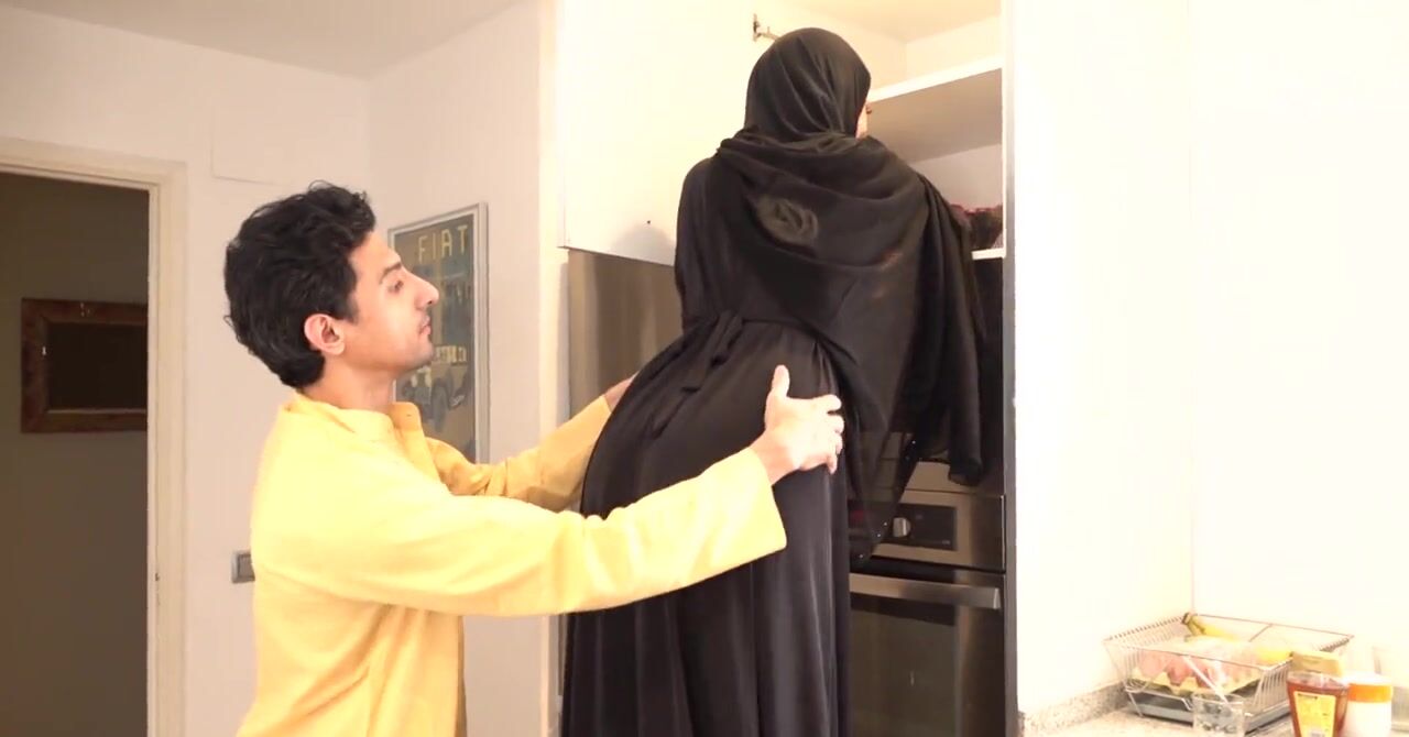 «Зрелая соседка мусульманка кажется очень развратной женщиной. Почему-то от неё так и веет сексом, хотя она носит черный хиджаб, который прикрывает всё её тело. Индийский чувак не ошибся, эта милфа всё-таки оказалась похотливой сучкой. Он смог развести её на секс на кухне и задрал черное одеяние дамочки, лаская её большую попку. А потом самец поставил милфу раком и принялся жарко трахать её в пизду.»