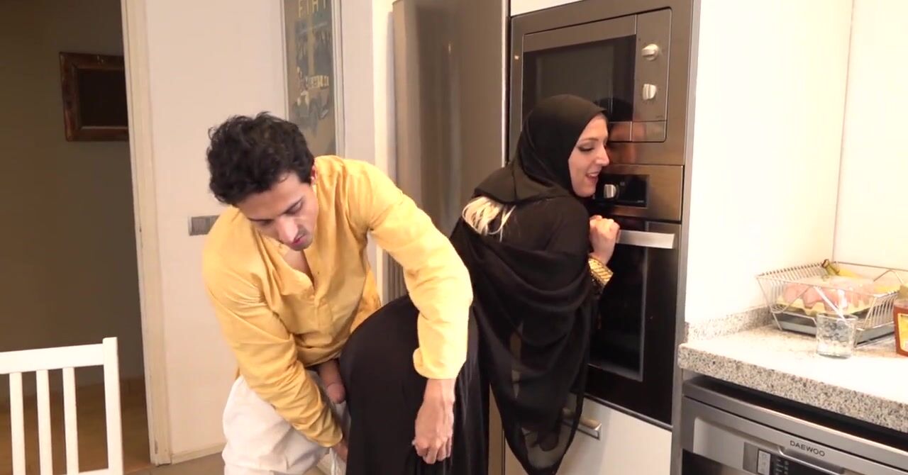 «Сосед пришел в гости не для того, чтобы пить чай. Он заявляет, что его безумно возбуждает привлекательная мусульманка в зрелом возрасте. Индийский парень дрочит на неё почти каждую ночь, представляя что загоняет толстый хуй в мокрую пизду милфы. Опытная мусульманка сама возбуждается, она опускается на корточки и принимается делать минет. Пока муж не вернулся домой, бестия должна успеть отсосать хер.»