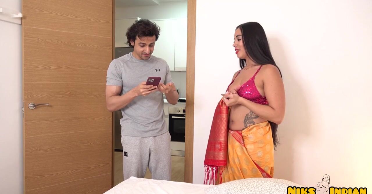 «Хозяин увидел как привлекательная горничная фоткалась. Красотка показывала свои упругие натуральные сиськи для снимков, и уже вскоре индийский парень застал её за этим занятием. Он тут же возбудился и стал приставать к загорелой брюнетке, предлагая ей заняться сексом. Девка не стала отказываться. Она с удовольствием взяла его хер в ротик и сделала жаркий минет, доставляя удовольствие. Красотка даже очко его вылизала.»