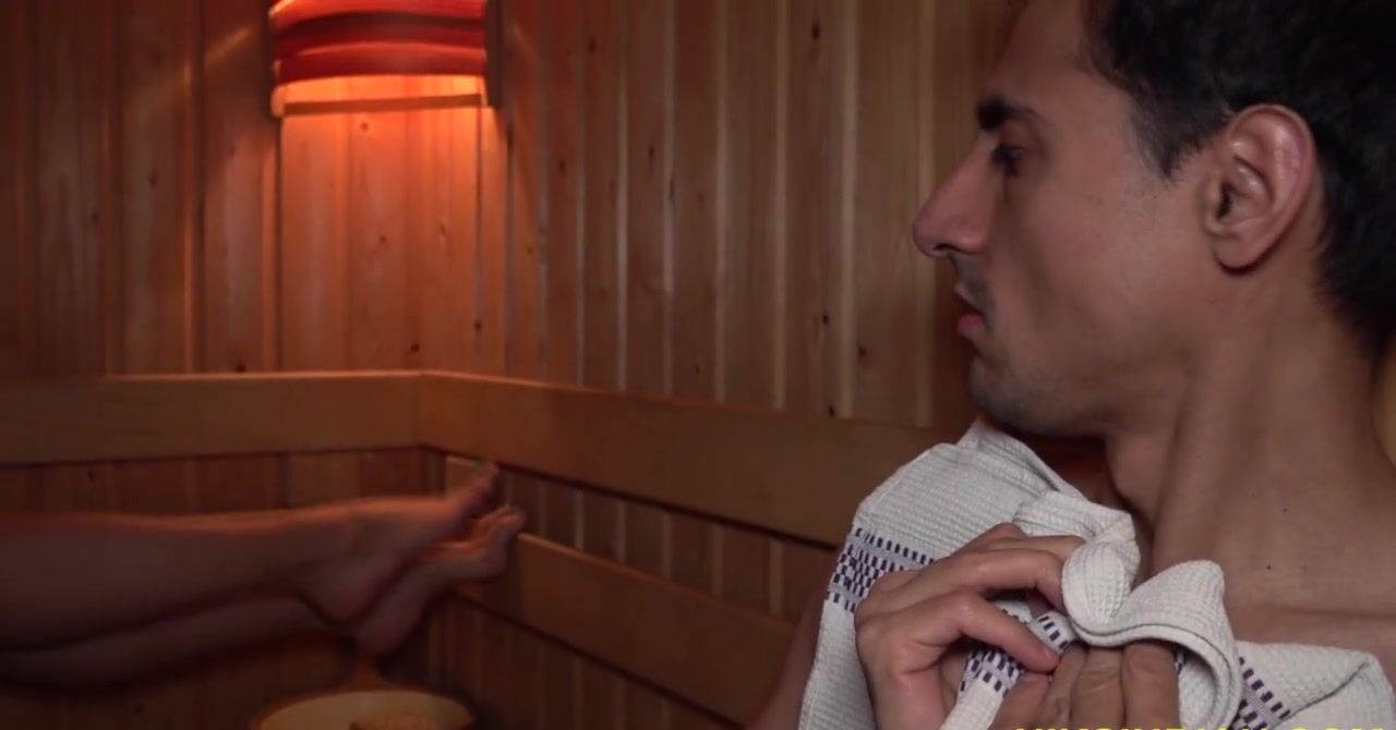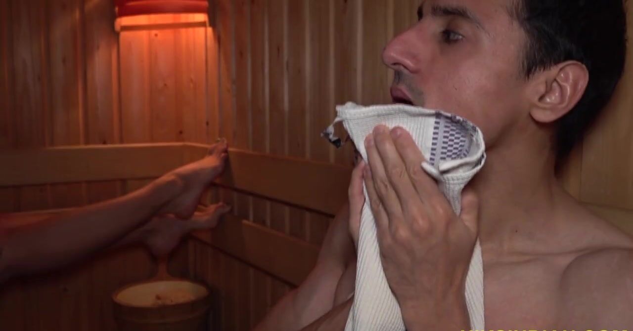«Красотка заигрывает с парнем в сауне. Они не знакомы, но это возбуждает только сильнее. Привлекательная цыпочка сбрасывает полотенце и показывает свои упругие сиськи с пирсингом сосков, а так же расставляет ножки и ласкает бритую киску. А может, незнакомец хочет облизать её ноги? Конечно, что хочет. А как насчет секса? Что, прямо тут и сейчас? Да, татуированная бестия хочет насладиться развратом, тем более, у парня большой хуй.»