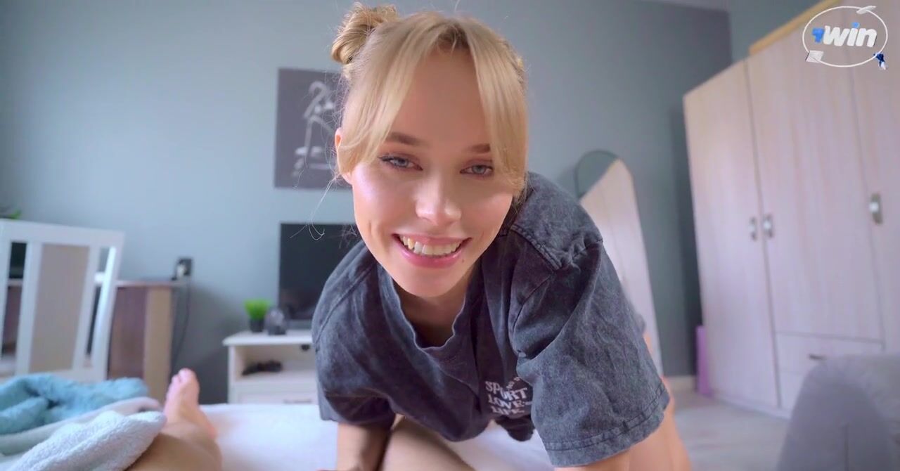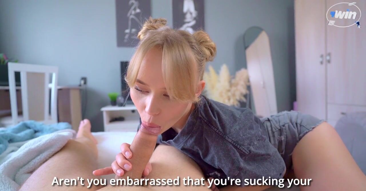 «Утренний стояк это вполне нормально, сводный брат не должен его стесняться. Белокурую же сводную сестру возбуждает этот бугор под одеялом и она просит показать ей хер во всей красе, красотке хочется на него взглянуть получше. Так чувак и делает, что заводит белокурую проказницу ещё сильнее. Она задирает футболку и показывает упругие сиськи с пирсингом сосков, после чего принимается делать ему минет.»