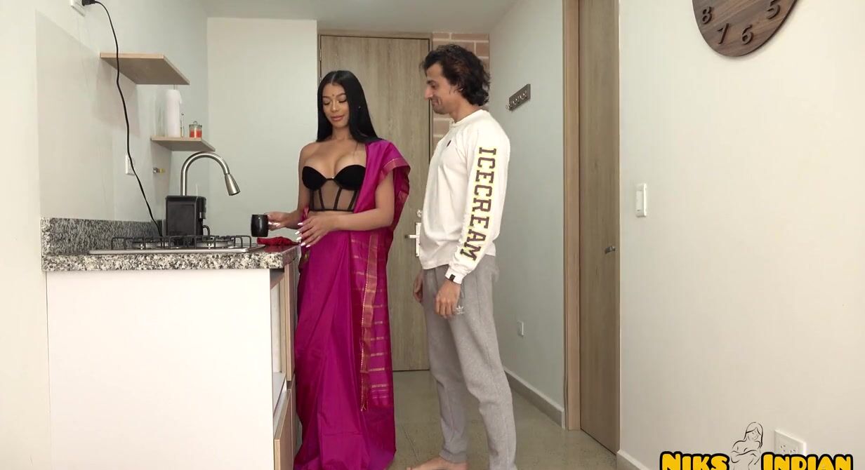 «Индийская красотка в лифчике и традиционной длинной юбке возбуждает приятеля, который вываливает свой большой хуй и просит телку ему подрочить. Что ж, это можно сделать, черноволосая проказница принимается ласкать толстый хер и опускается перед ним на колени, чтобы сделать минет, ведь ей самой одной мастурбации оказывается мало. Красотка уже вскоре ещё и в киску отдается, испытывая сильный оргазм.»