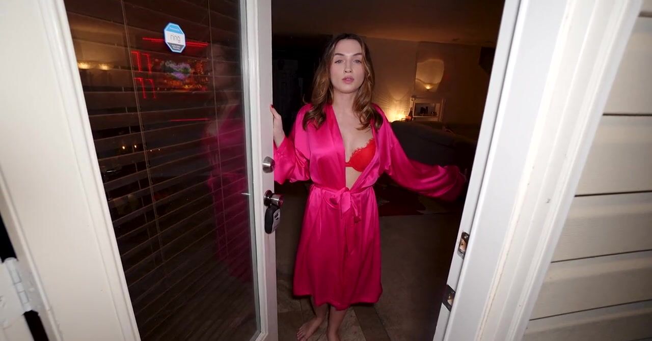 «Красотка в красном белье как раз мастурбировала дома и думала о сексе, но тут в её двери постучали. Оказалось, что парень заблудился и ему нужно позвонить. Рыженькая милашка с силиконовыми сиськами его просто так не отпустила, эта жаркая проказница взялась смачно отсасывать большой член незнакомца и отдалась ему в бритую киску. Теперь девчонка будет удовлетворять свои сексуальные желания и кончать.»