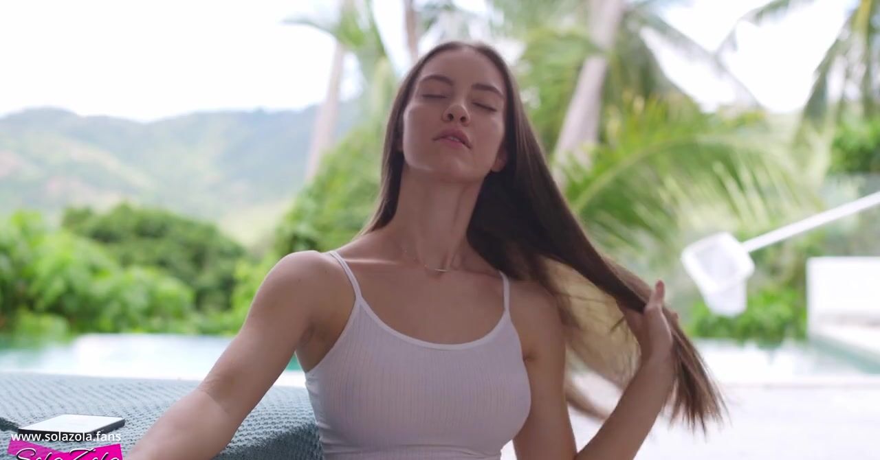 «Красотка не на шутку возбуждается, её рука тянется к бритой киске и она уже думает себя приласкать. Но тут приходит работник отеля, который принимается чистить бассейн. Худышка с силиконовыми сиськами теперь может соблазнить его на интим и насладиться жаркой еблей. Фигуристая цыпочка так и делает, она стягивает штаны с незнакомца и принимается первым делом отсасывать его твердый член, возбуждаясь ещё сильнее.»
