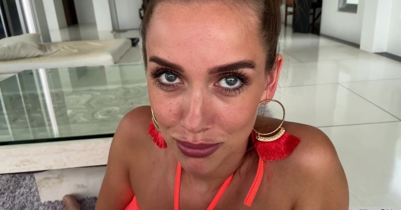 «Парень просит русскую красотку смотреть ему в глаза во время минета, ведь они у неё нереально красивые. К тому же, зрительный контент очень возбуждает. Эта крошка имеет красивое личико, а ещё она прекрасно полирует хер, даря нереальное удовольствие, отчего бойфренд кайфует по полной программе. А не будет ли девушка против, если он кончит ей в ротик? Нет, она будет даже рада, ей по душе вкус спермы.»