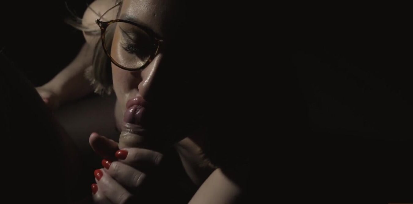 «Красотка в очках делает томный минет в полутьме, доставляя парню удовольствие своим умелым ротиком. Сосет она очень нежно и со знанием дела, заставляя молодчика изнывать от удовольствия. Жаркая бестия знает своё дело, а ещё она смотрит парню в глаза, что его ещё сильнее возбуждает. Она сама просит, чтобы тот закончил оральный секс спермой на её личике, пусть белая конча украсит её губки и она их оближет.»