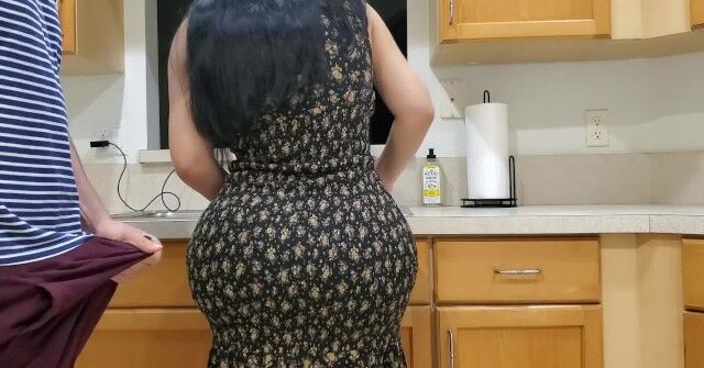 «Мачеха моет посуду, но пасынок не хочет ей помогать, у него совершенно другие планы. Он задирает платье сочной мачехи и принимается ласкать её большую задницу, а черноволосая милфа не возражает, она встает раком и прогибает спину, дико возбуждаясь. У этой мамочки не только огромная жопа, но ещё и сиськи. Она не против заняться с пасынком сексом, пусть молодой пацан её как следует отжарил в бритую пизду.»