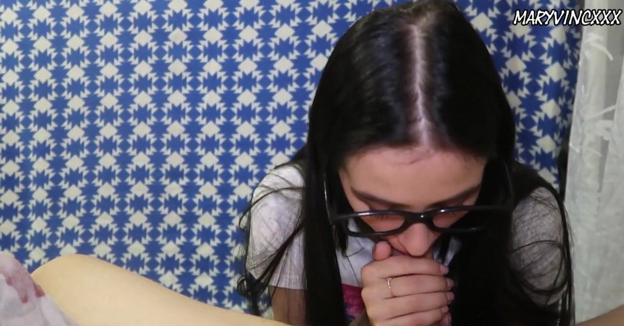 «Милая русская девушка уже довольно давно не трахалась, поэтому сразу же приглашает к себе парня, с которым познакомилась в тиндере. Эта привлекательная крошка намерена не тратить время на свидания, а заняться с ним сексом. Стройная брюнетка в очках возбуждает гостя и овладевает его твердым членом, который принимается как следует отсасывать. Эта развратница прекрасно поработала ротиком и отдалась в писю.»