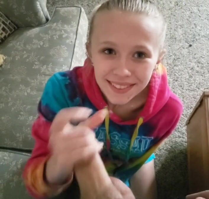 «У милой сводной сестры, которой недавно исполнилось 18 лет, играют гормоны, поэтому она смотрит много порно и мастурбирует. Как раз за этим делом её застал сводный брат, который предлагает милашке лучше воплотить в реальность одну из её фантазий. Худышка может взять его толстый член в ротик и сделать минет. Раньше у худышки не было такого опыта, но она хочет попробовать и принимается сосать. Как для первого раза получается у неё очень даже неплохо.»