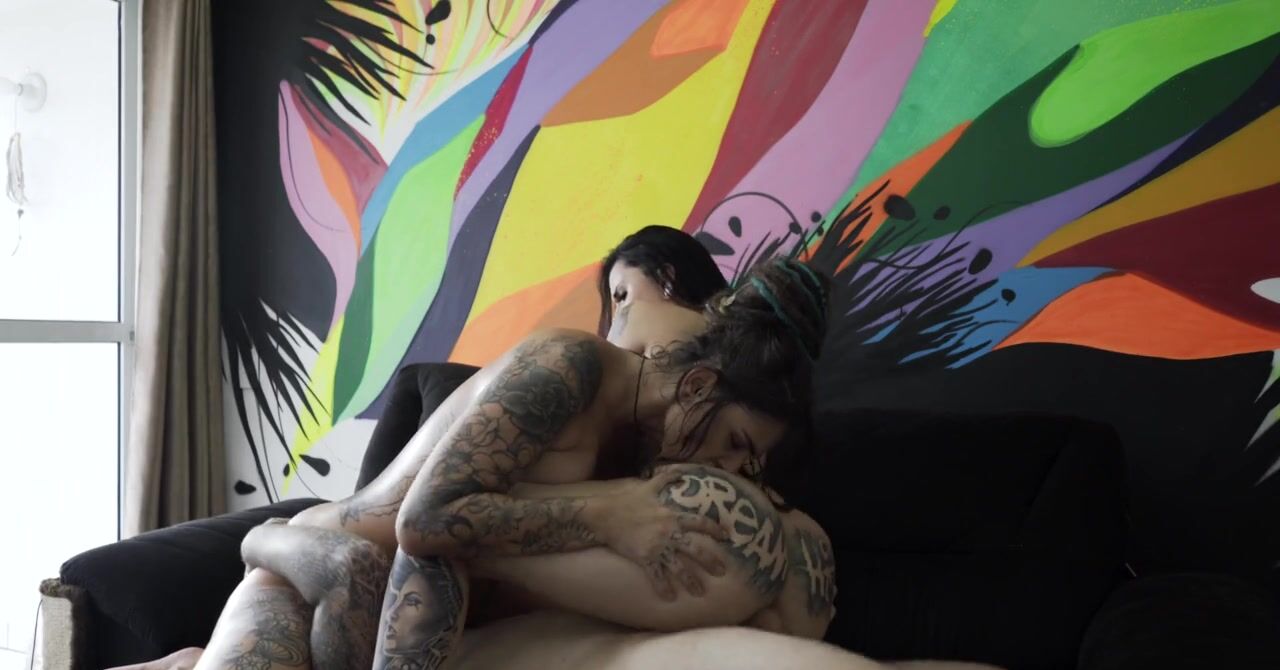 Татуированные бисексуалки после поцелуев хотят насладиться хуем
