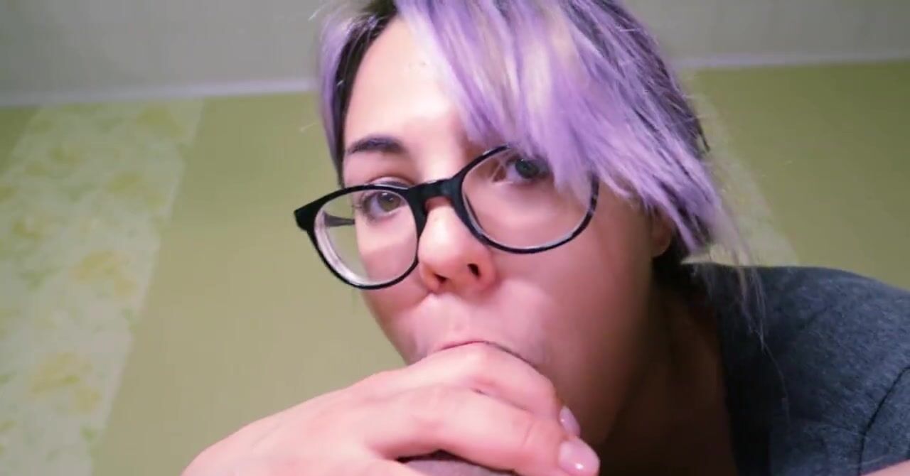 «Милой девушке с фиолетовыми волосами хочется что-то поменять, поэтому она предлагает парню сегодня трахнуть её не в киску, а в ротик. Хотя уже вскоре оказывается, что больше будет подходить немного другое определение. Это она его трахает своей глоткой, насаживаясь на фаллос. Привлекательная проказница в очках хочет ещё и сперму на вкус попробовать, поэтому просит молодчика не стесняться и кончать в рот.»