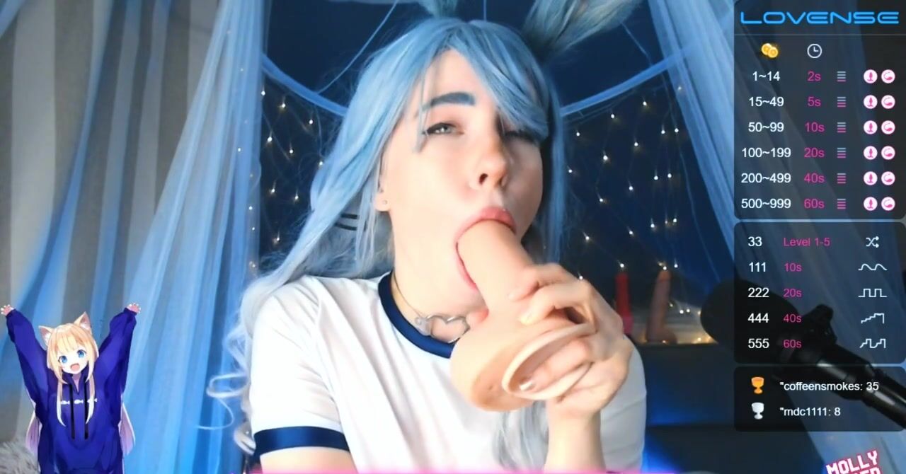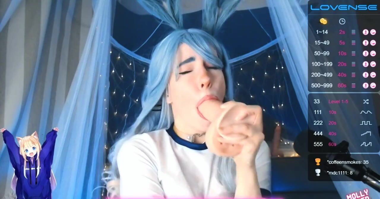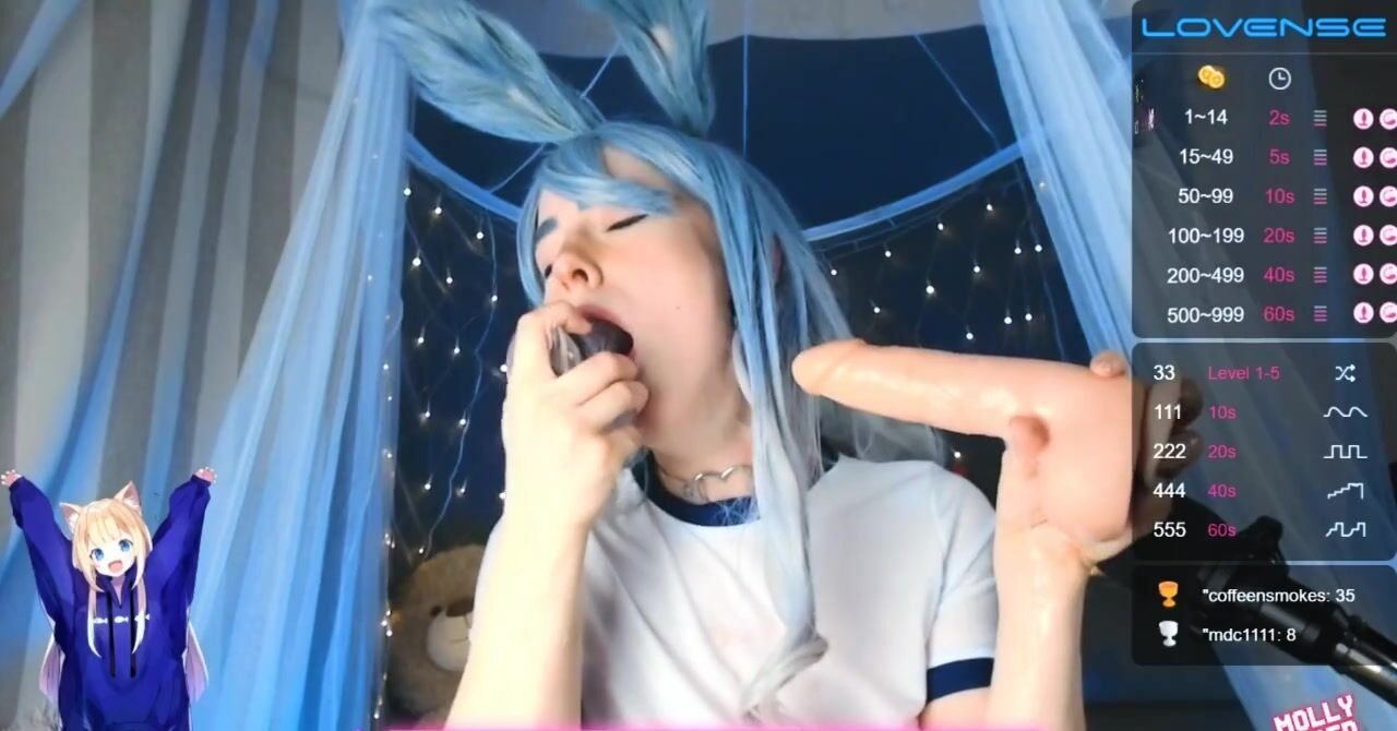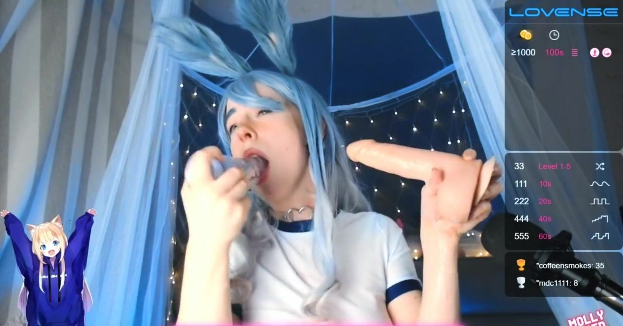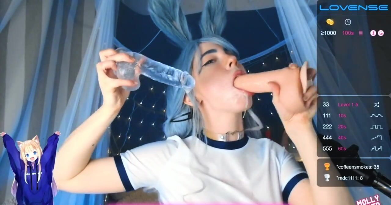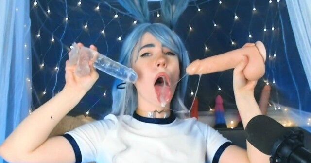 Мальвина с синими волосами сосет резиновые хуи перед вебкой