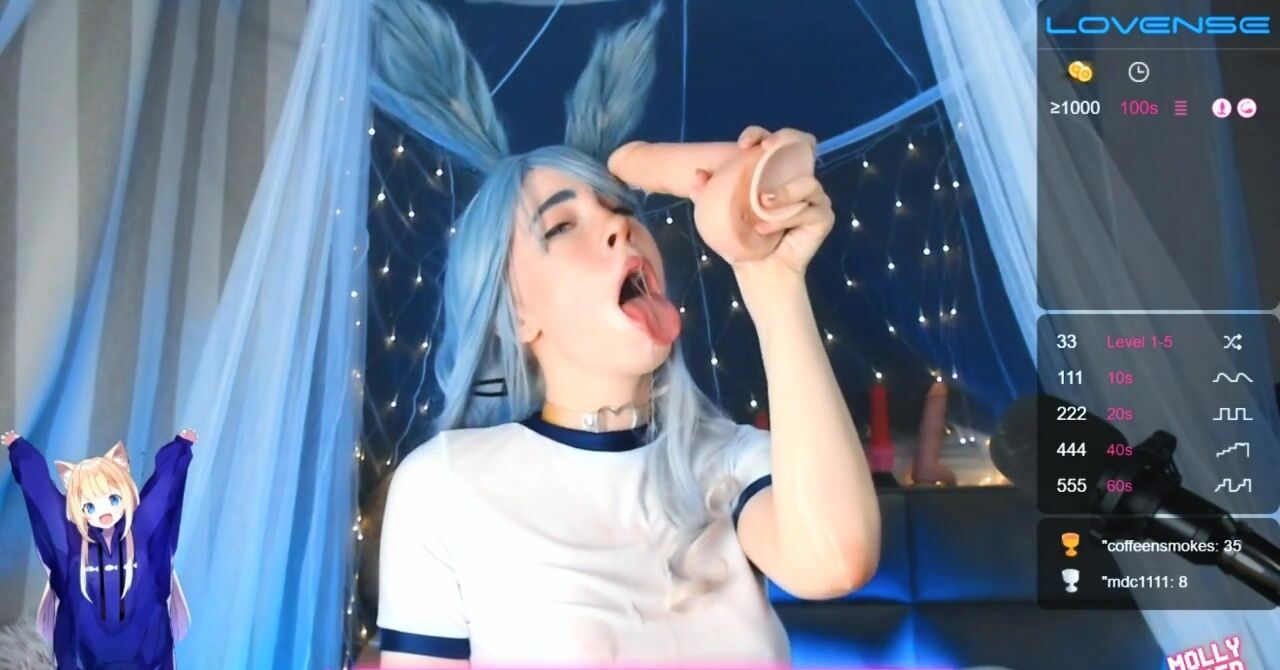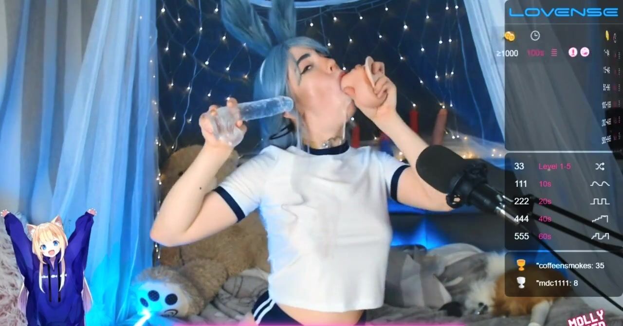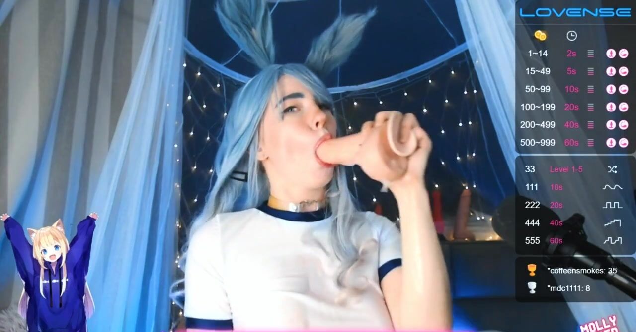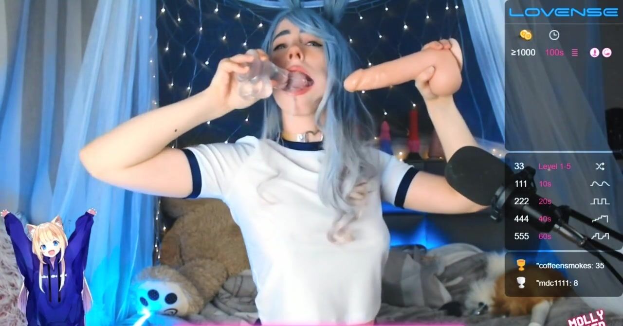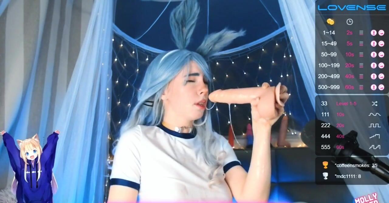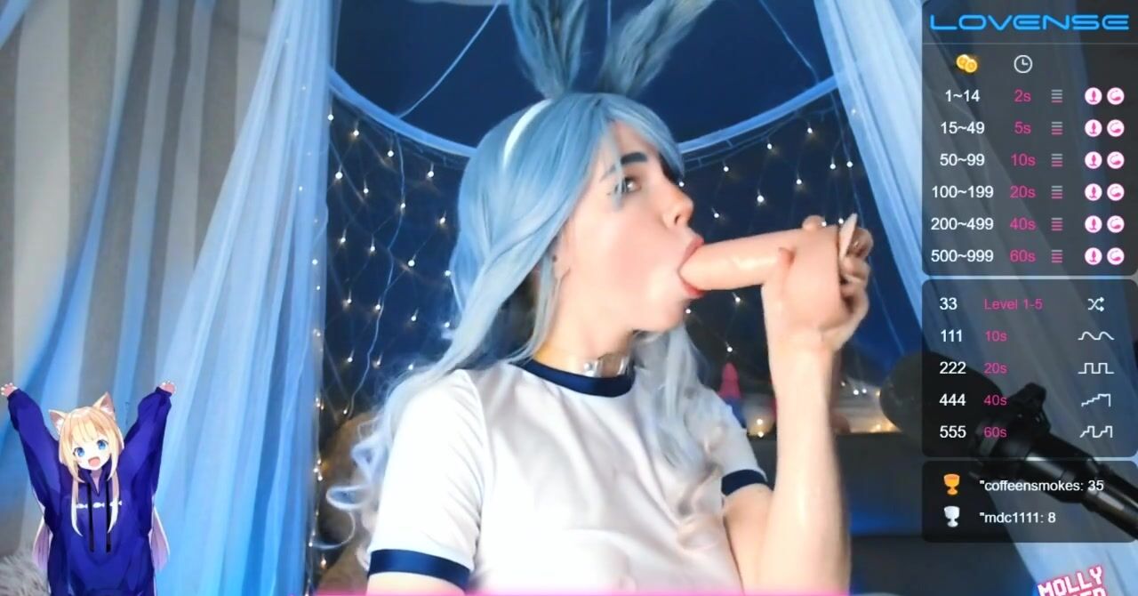 Мальвина с синими волосами сосет резиновые хуи перед вебкой