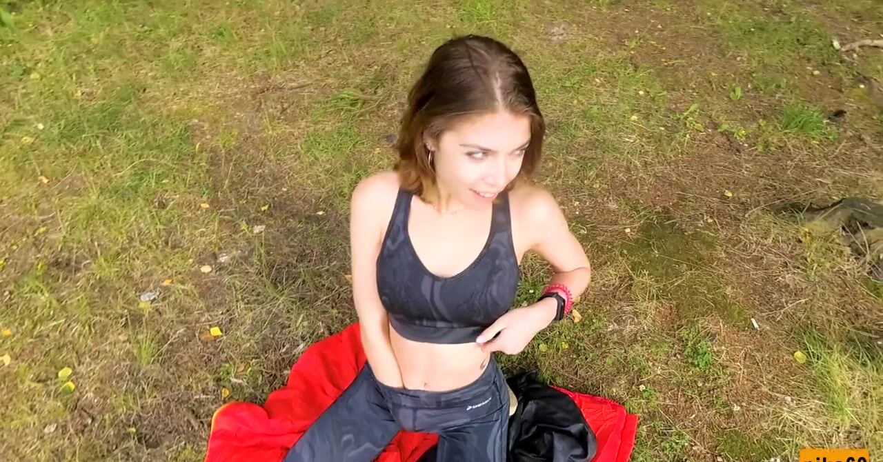Выбрались в лес и красотка соблазняет на дикую еблю