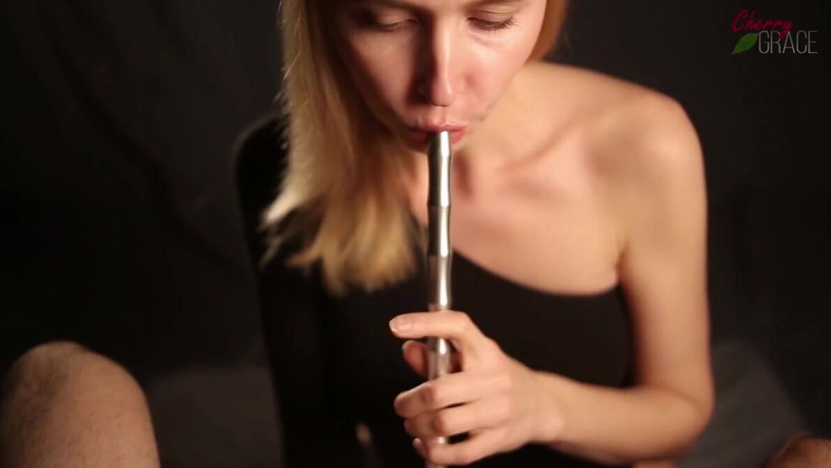 «Кальян и нежный минет от блондинки — шикарный вечер. Эта белокурая цыпочка берется сладко сосать бойфренду и попутно курит, выпуская на член горячий дым, что доставляет ему удовольствие. Стройная развратница заглатывает пенис и доставляет наслаждение. Она знает, как нравится парню, поэтому сосет медленно и томно смотрит ему в глаза. А ещё эта жаркая девчонка разрешает кончить ей в ротик и пробует сперму на вкус.»