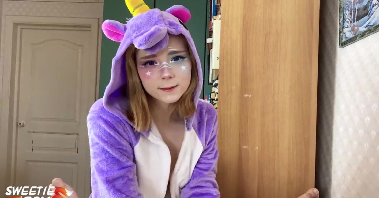 «Костюм единорога это инфантильно? Возможно, но рыженькой девушке плевать, она любит свою уютную пижаму, которая не мешает ей делать взрослые и очень развратные вещи. 18-летняя крошка хочет порадовать бойфренда глубокий минетом и принимается смачно сосать его твердый хуй. Эта девчонка умеет доставить удовольствие, полирует хер она с наслаждением. На этом она не останавливается, девке хочется и в киску отдаться.»