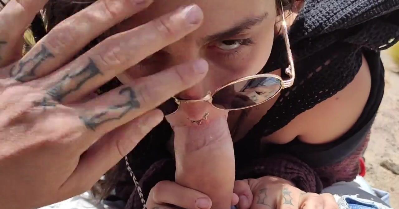 Неформалка в пустыне смачно сосет хуй и глотает сперму