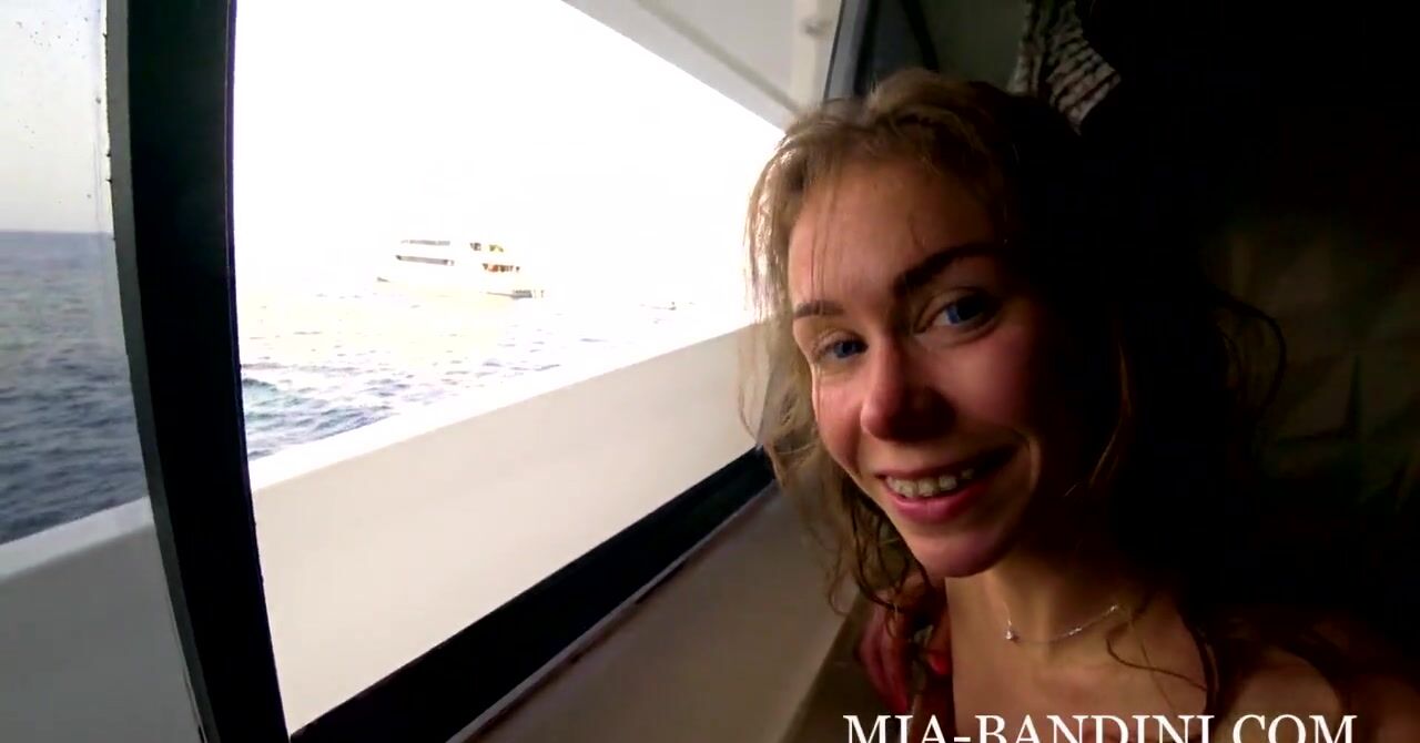 «Пара проводит время на круизном лайнере за жарким сексом. Стройная красотка становится настоящей оторвой, когда дело касается ебли. Она жарко сосет хуй бойфренда и отдается ему во все дырки. Худышка даже просит ебать её в очко, а потом снова в бритую пизду, после чего берет хер в ротик и жарко сосет. А вот кончает мужик ей в вагину, после чего девка показывает как из её щелки вытекает сперма, попутно лаская себя.»
