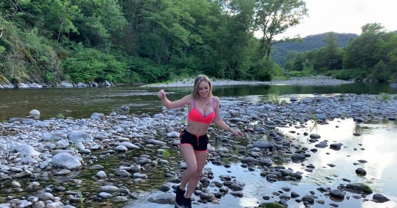 «Милая блондинка на природе показывает свою упругую попку в обтягивающих шортиках, а так же оголяет большие силиконовые сиськи. В этом красивом месте привлекательная бестия хочет сделать минет. Чувак с удовольствием угощает её своим крепким фаллосом, который развратница тут же принимается полировать. Ей самой безумно нравится сосать, она делает это с явным кайфом, а ещё она просит кончить ей на личико.»